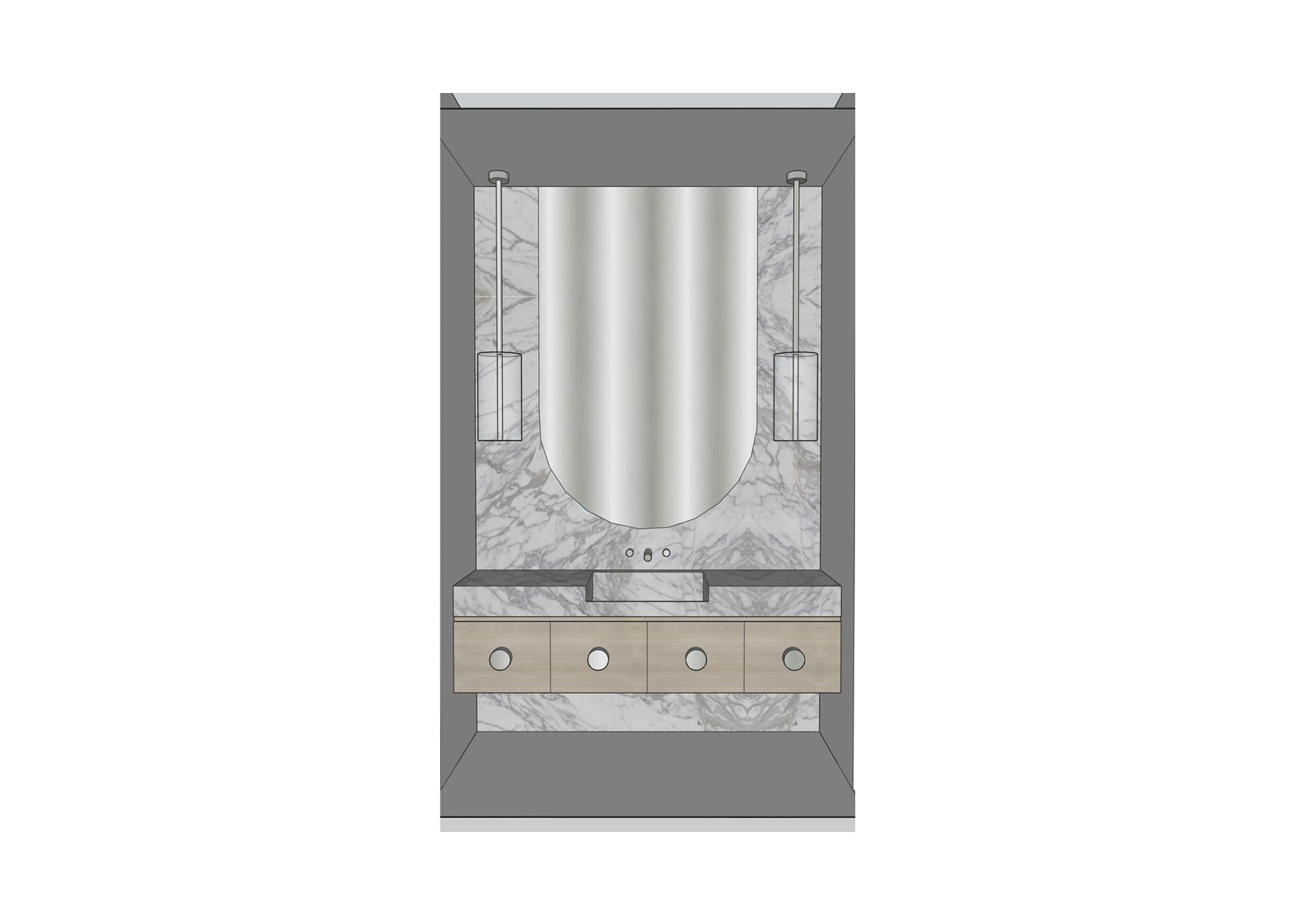 transform the provided elevation into a hyper realistic interior photograph that is indistinguishable from a real professionally shot interior design photograph this must read as a real space captured by a camera not a rendering not a visualization not architectural cg not concept art and not an illustration geometry lock non negotiable preserve the exact original geometry layout proportions ceiling details wall depths panel divisions openings doors cabinetry locations millwork dimensions built ins and circulation paths with zero architectural changes nothing may move scale simplify or be reinterpreted geometry must remain absolutely unchanged camera derivation critical derive the camera position height angle and framing strictly from the uploaded elevation eye level interior photography centered or naturally balanced composition 24 35mm interior lens feel no dramatic angles no stylized framing do not reuse or approximate camera framing from any previous image remove all drawing artifacts completely remove all linework cad edges drafting outlines diagrammatic shapes sketch artifacts nothing may appear outlined flat schematic or illustrative the elevation must be visually reinterpreted as a finished real interior photograph material realism rules wood if present smooth solid plank material extremely subtle restrained grain matte or soft satin finish only no graphic patterns no decorative striping no visual noise wood must absorb light gently never glossy or sharp fabric upholstery if present soft compression subtle seams gentle shadowing natural fabric texture no flat color blocks stone slabs if present light natural veining soft organic variation low contrast no symmetry no bold or busy patterns stone must feel heavy and grounded walls fine surface texture slight tonal variation never flat paint edge construction realism all edges corners joints and transitions must be softly broken and physically realistic no razor sharp corners no cgi perfect edges slight construction tolerances only everything must read as fabricated installed and dimensional lighting photographic behavior lighting must behave like real high end interior photography natural daylight only unless otherwise specified realistic light bounce gentle shadow falloff uneven exposure distribution subtle brightness variation across surfaces avoid studio lighting uniform illumination over clean exposure global illumination look slight softness is preferred over sharpness camera image imperfections very important introduce subtle photographic characteristics gentle lens softness micro exposure variation natural contrast roll off mild atmospheric depth primary plane sharp background slightly softer the image must feel captured not generated absolute constraints no creative interpretation no stylization no exaggeration no added or removed elements any deviation from the original elevation geometry or intent is unacceptable negative prompt always include architectural rendering 3d visualization cgi unreal engine octane vray sketchup look flat textures graphic lines outlined edges over sharpened studio lighting concept art illustration ai look plastic materials glossy wood high contrast grain perfect symmetry keep design as shown in the picture keep the design as it is in image light cabinets are white and brown cabinets are white oak keep design in the image as it is