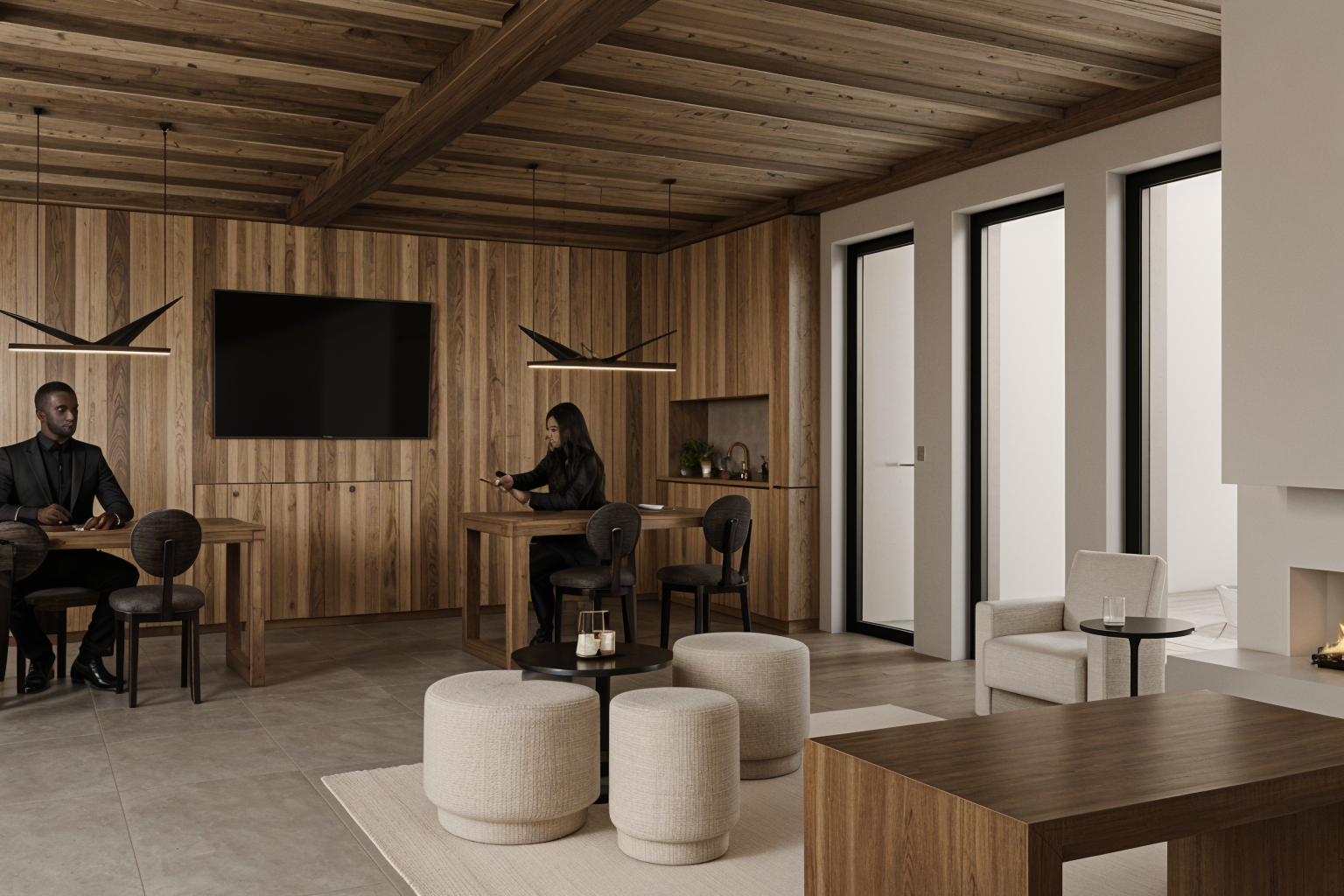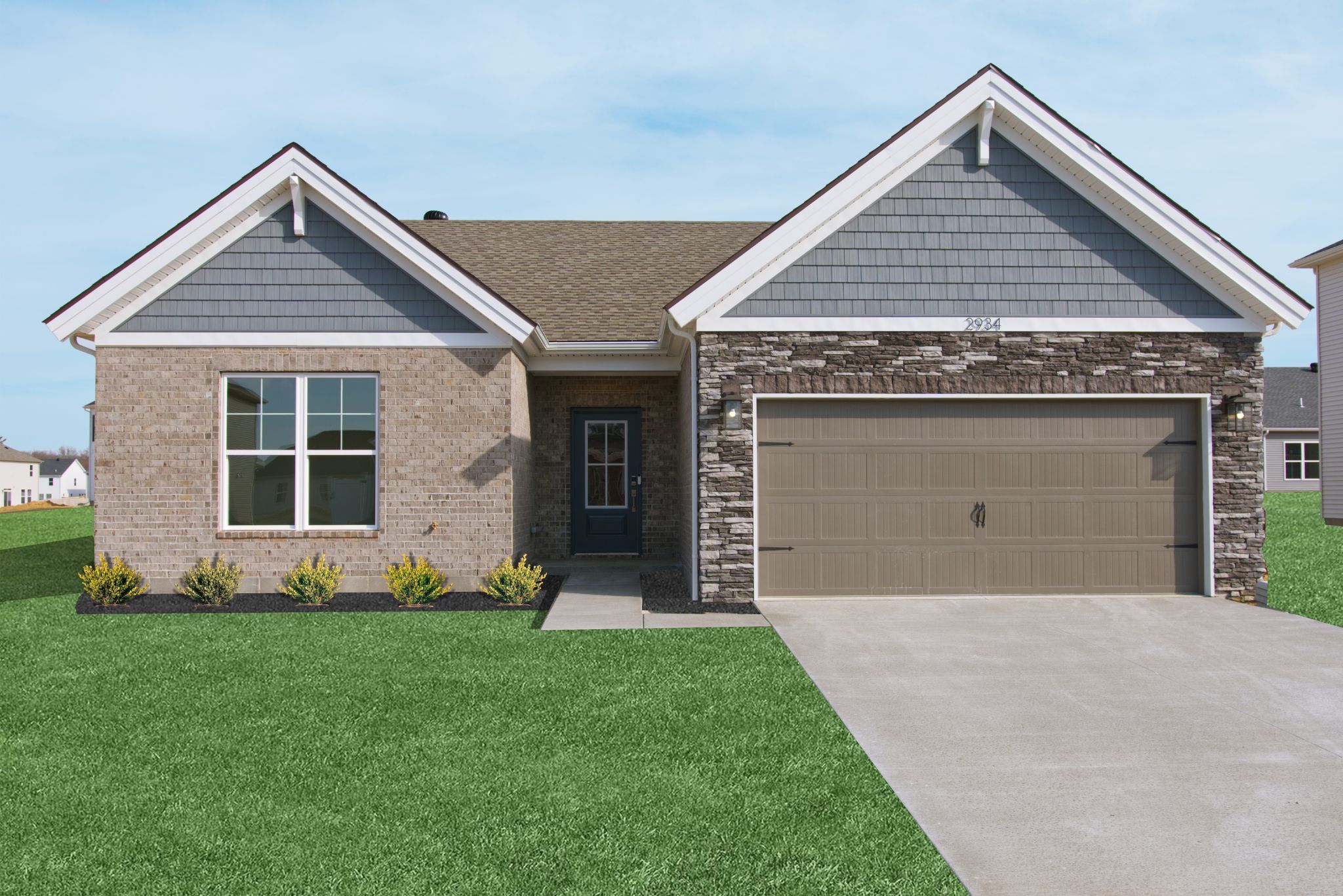 use the provided image of this home exactly as is and do not alter or remove any architectural or landscape details transform the scene to look like it was photographed on a crisp fall day with warm golden light add subtle seasonal elements such as pumpkins on the porch a fall wreath on the door and a few planters or mums in autumn colors include scattered fallen leaves in the yard and along the sidewalk with trees and shrubs showing autumn foliage in tones of orange red and gold keep the house itself unchanged in structure color and materials
