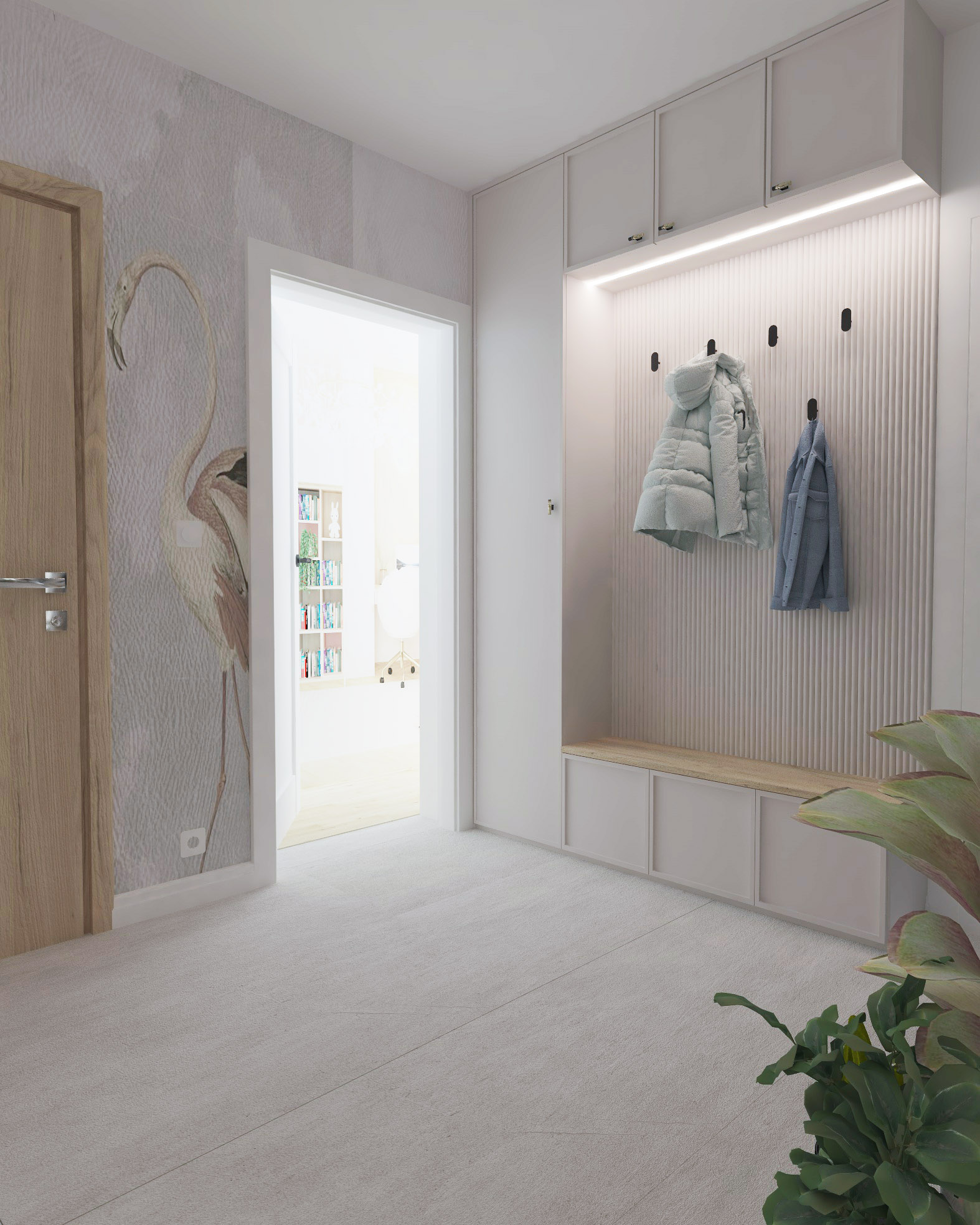 improve the lighting add a purse and sunglasses on the counter under the jackets