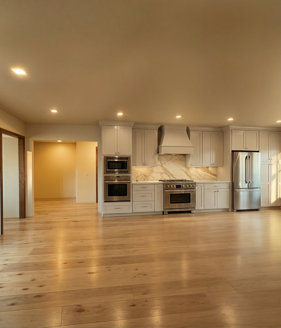 do not change the structure or layout of this kitchen make the hallway behind the kitchen one flush walled hallway