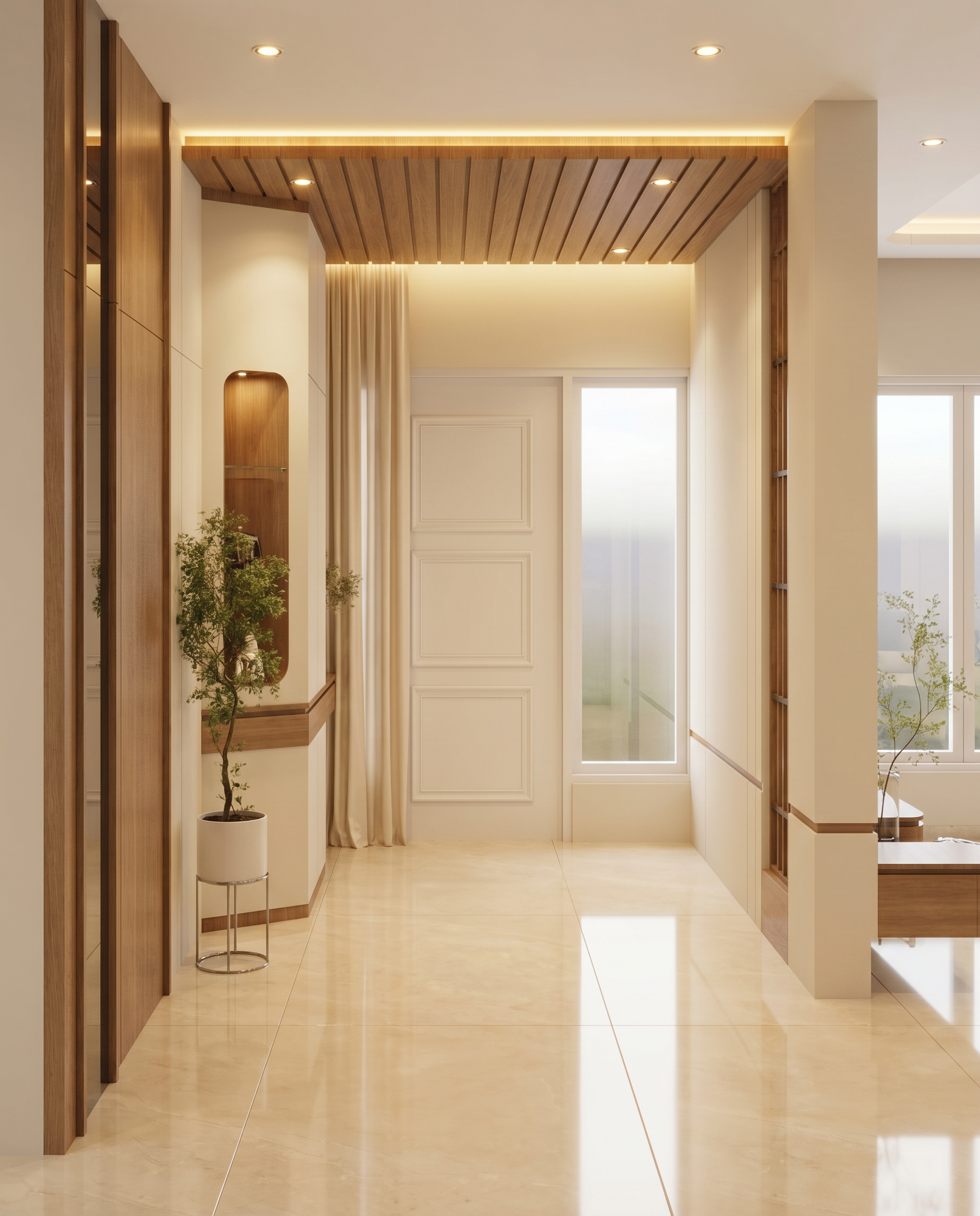 white glass on wall with intense reflection between the upper and lower cabinets