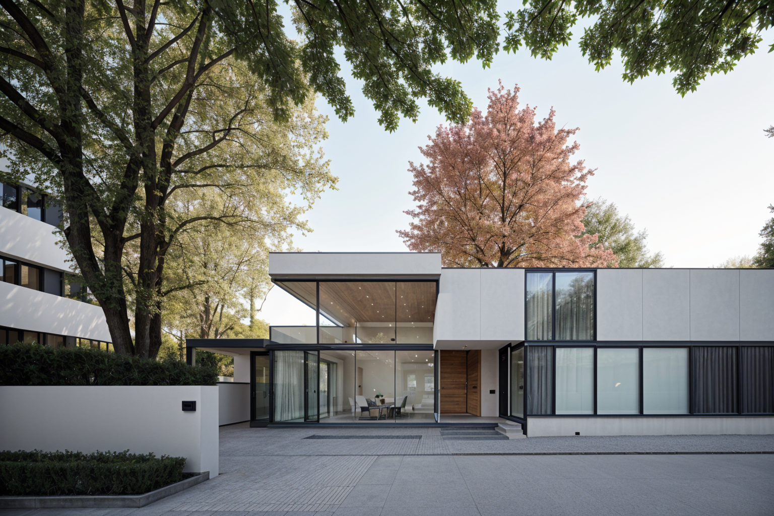 modern exterior shot realistic apartment building warm and welcoming architecture