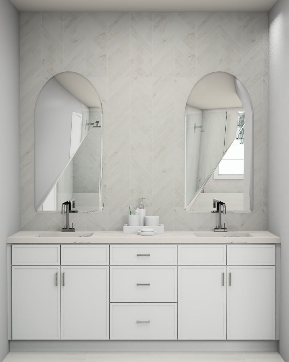 add 3 tiered crystal chandeliers in the center of the mirrors