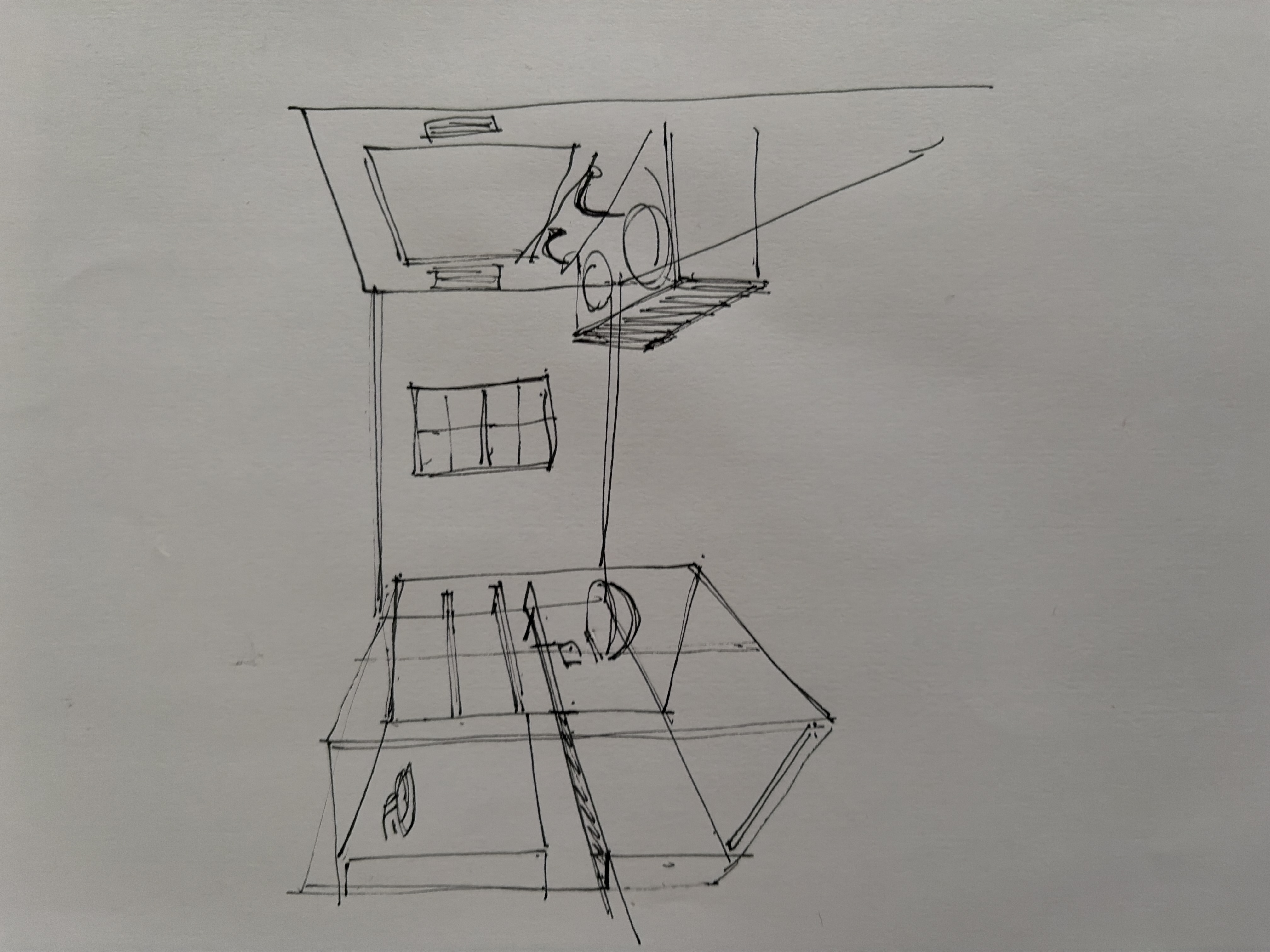 render this bathroom overlooking a garden with light brown see through shower glass partition marble tile shower wall patterned tiles beige on the wall flitted dark oak vanity and frames mirror with wall mounted warm lights