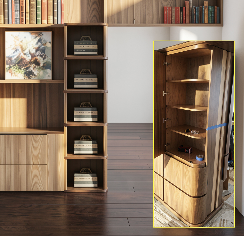 keep everything the same but add a beverage fridge in both of the open spaces under the countertop remove outlets add a commercial coffee maker and snacks to make it look like a snack bar add people to it