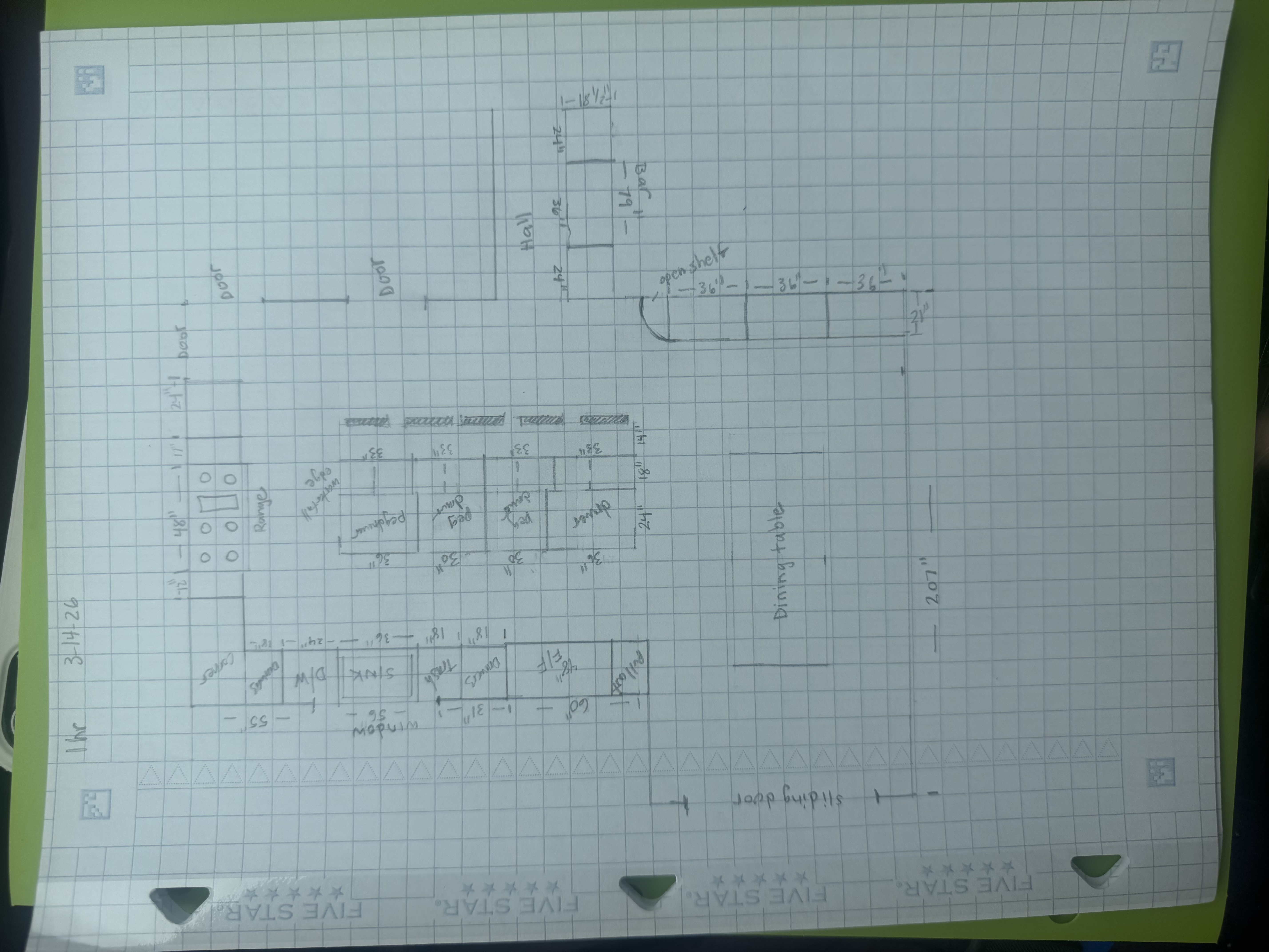 keep the dimensions exactly as drawn each square grid is 12 by 12 this is a kitchen remodel keep the walls where shown and the windows and doors as shown cabinets are white inset thin shaker 48 wolf range paneled 48 fridge freezer keep my exact layout