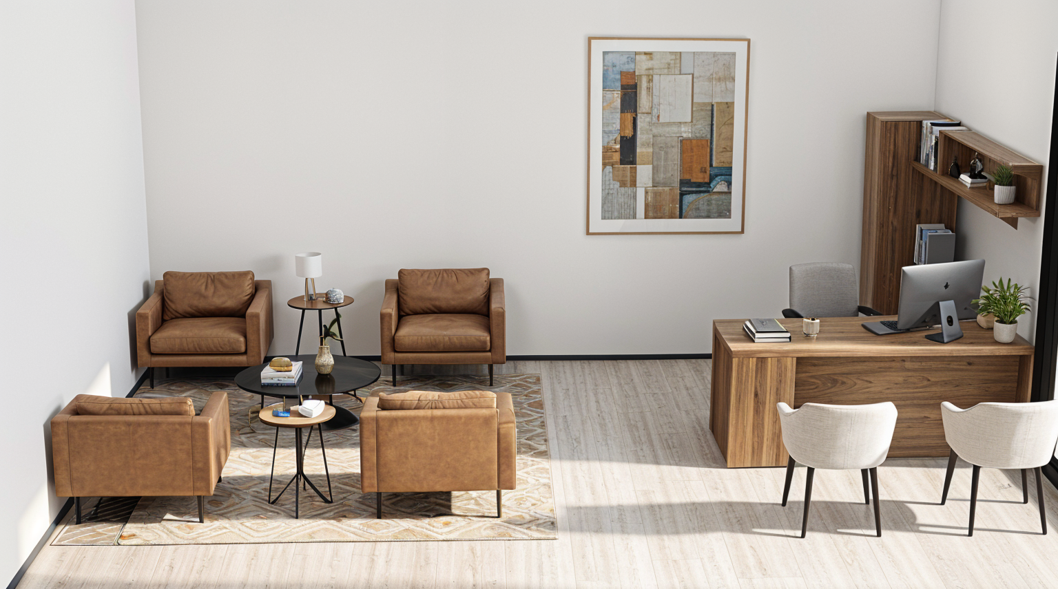 add decor on the desk and shelf make brighter