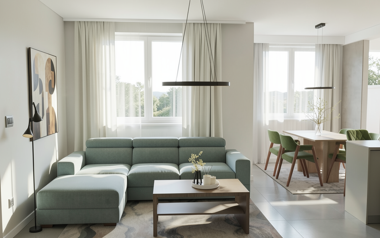 create a traditional bathroom scene that uses the green skirting tile and dado at half hight the floor should be a chequerboard the bath should be a roll top there should be a big window with lots of natural light