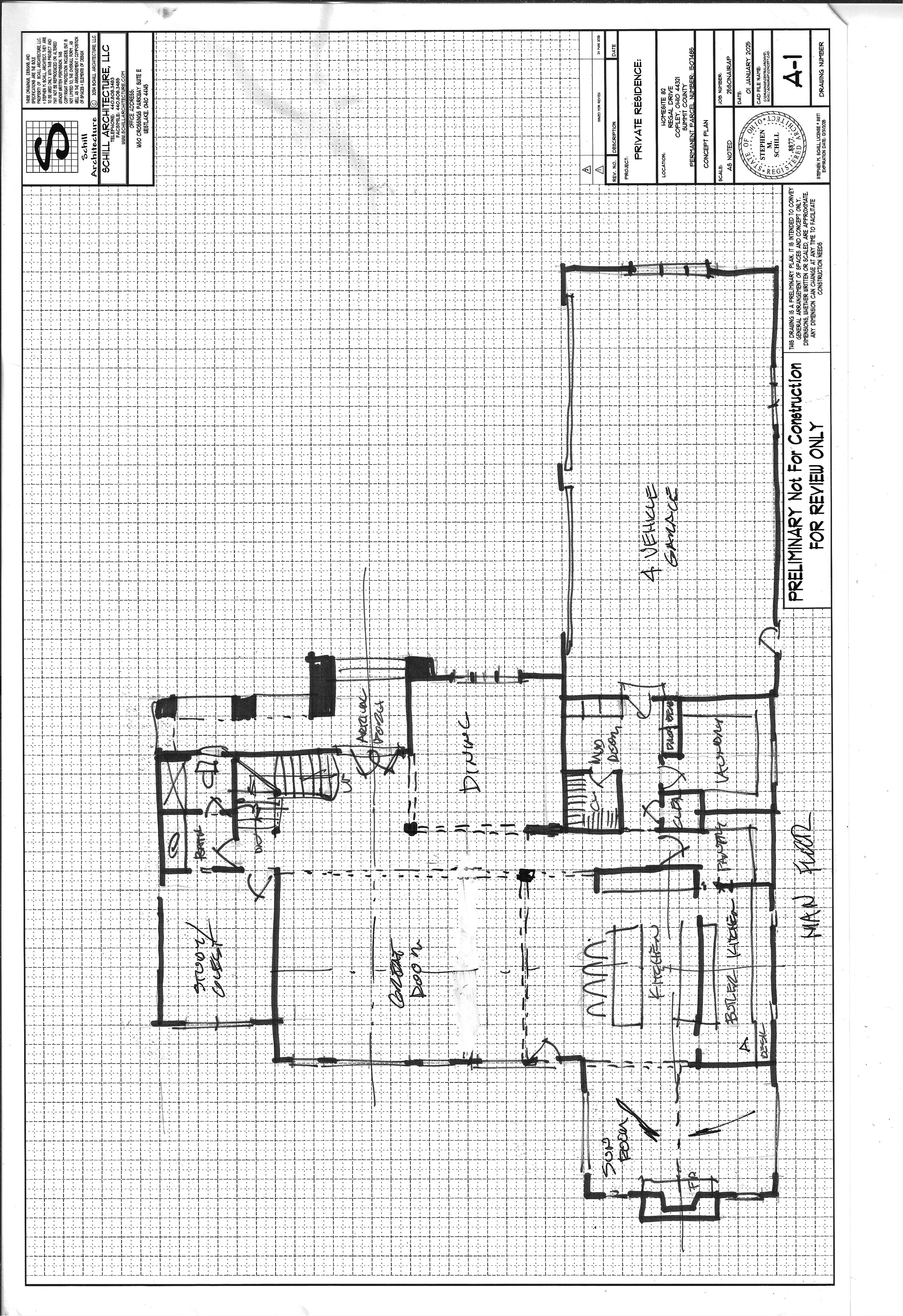 interior rendering of the kitchen looking from the great room with wood floors white walls light wood cabinetry taj mahal counters and arched openings to the pantry
