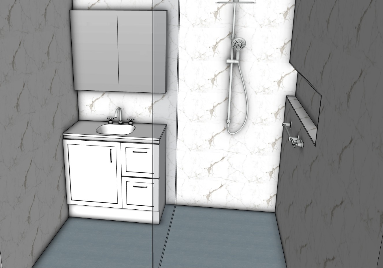 no dark wall tiles remove frame around shaving cabinet remove shower drain keep everything else the same