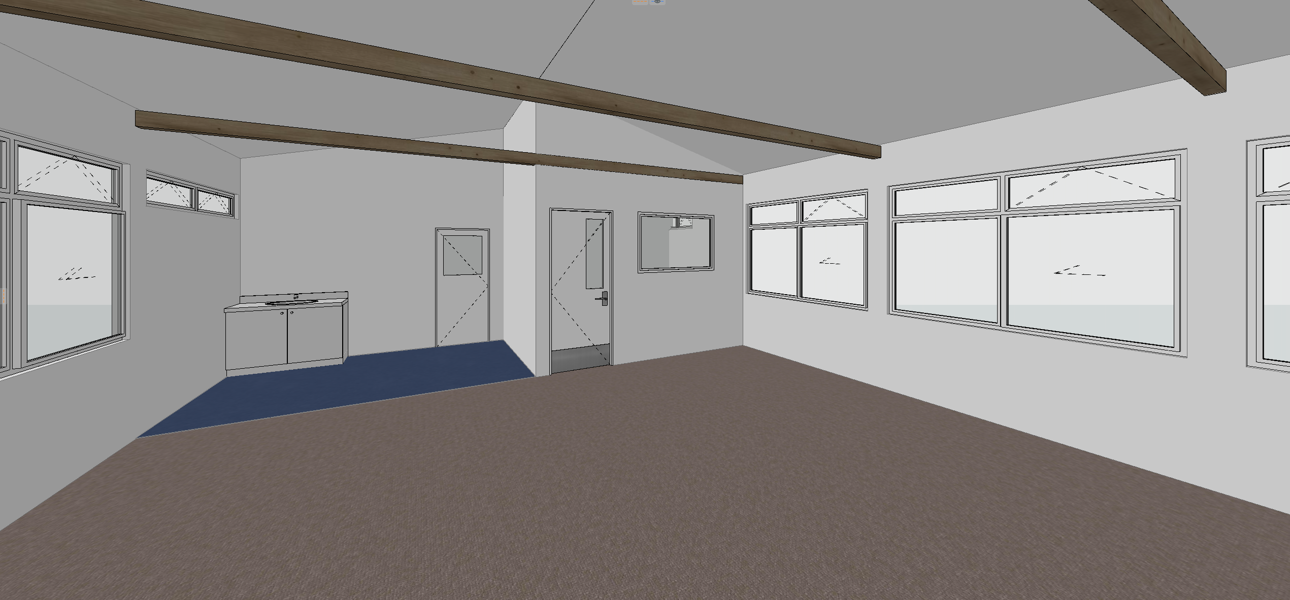 render a photorealistic 3d perspective of this internal classroom view reference the current material style just enhance them
