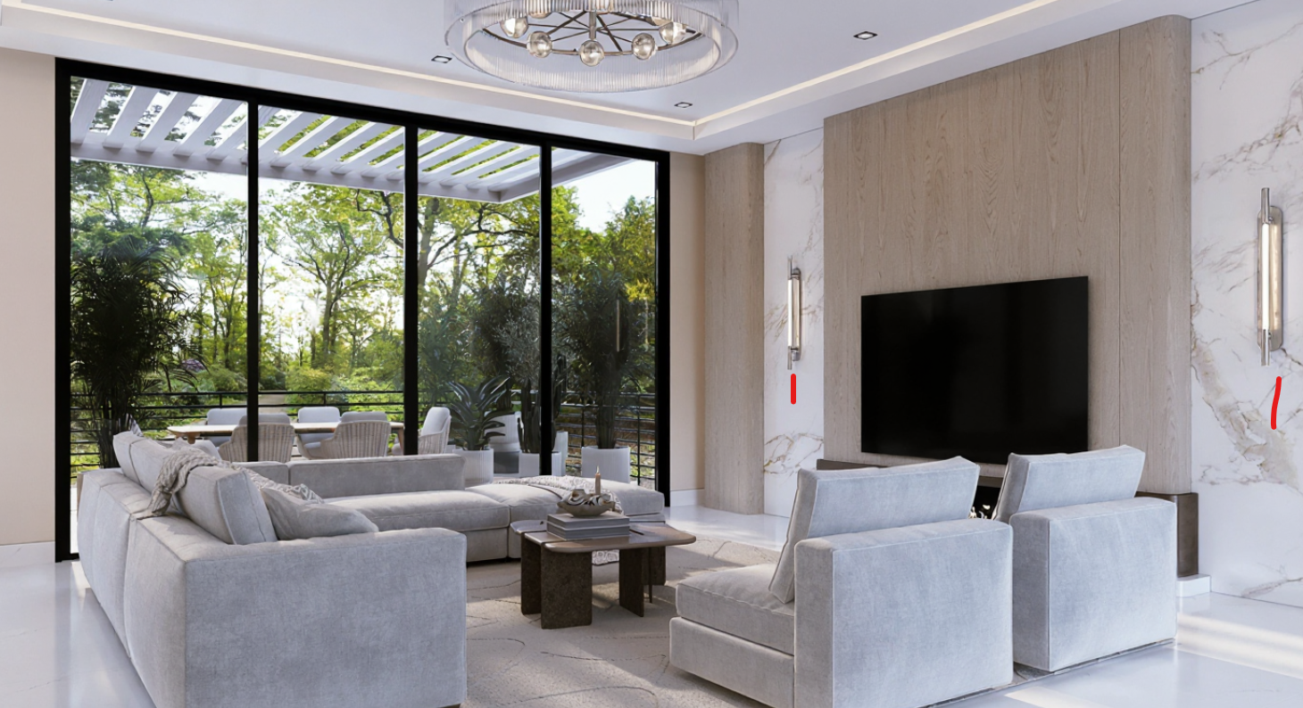 move the sconces down to the red marks on the wall then remove the red marks