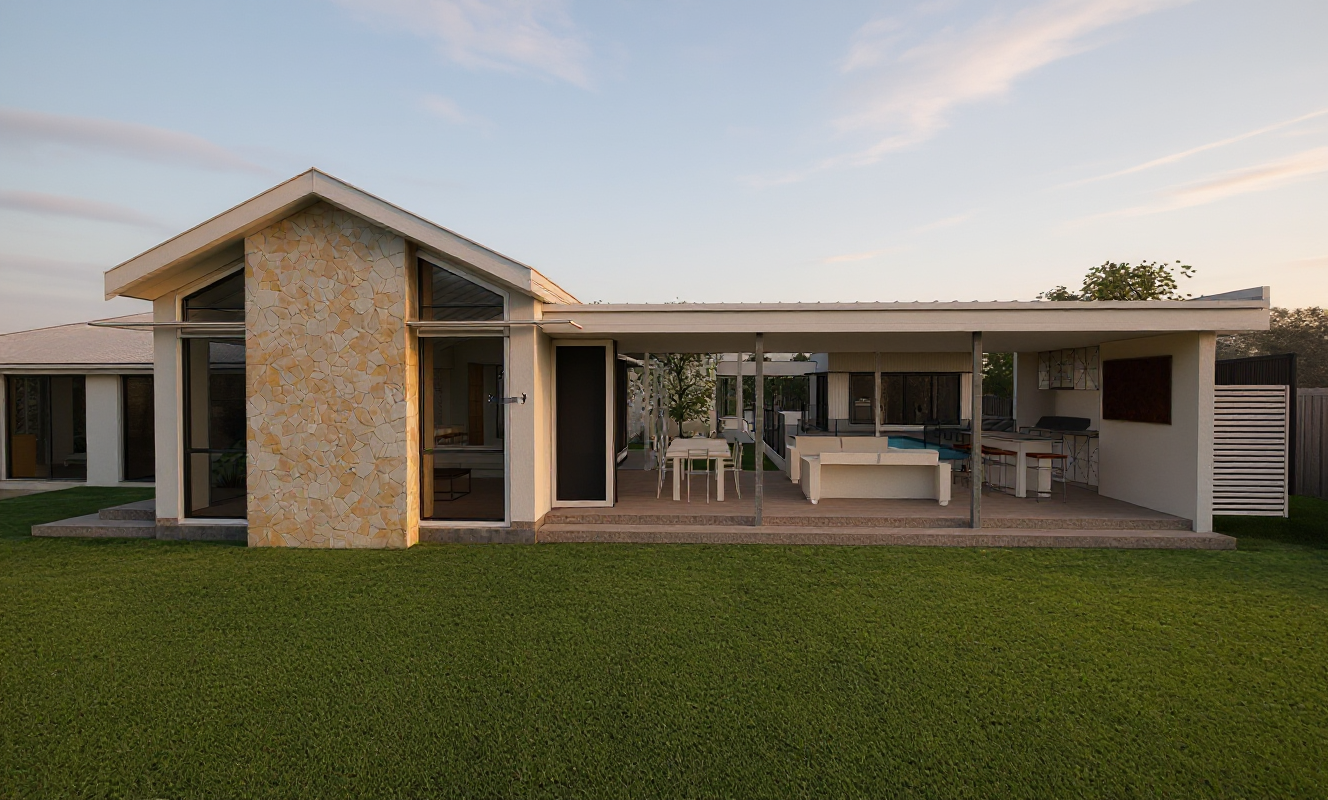 bushland background add more plants to garden beds reduce density of trees in background 4wd in driveway