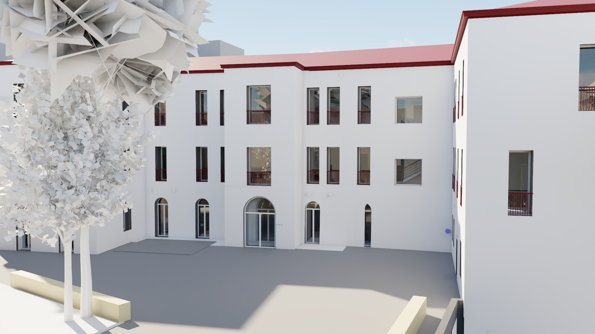 exterior shot ai muri bianchi associa i materiali dell immagine di rifermento senza cambiare nulla a livello architettonico non modificare finestre e porte fallo piu realistico