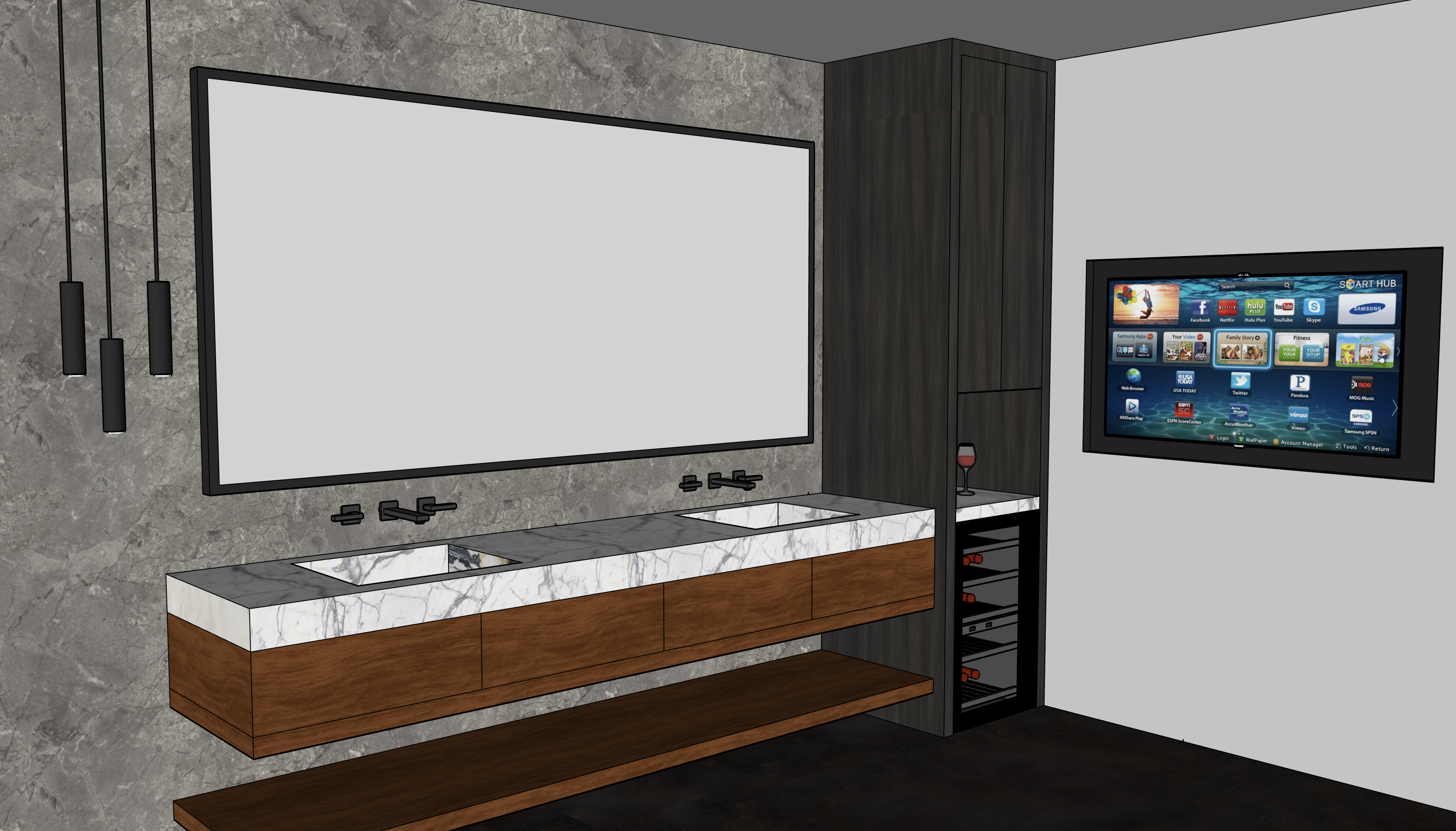 add a mirror texture to the rectangle on the wall with a glowing led light behind
