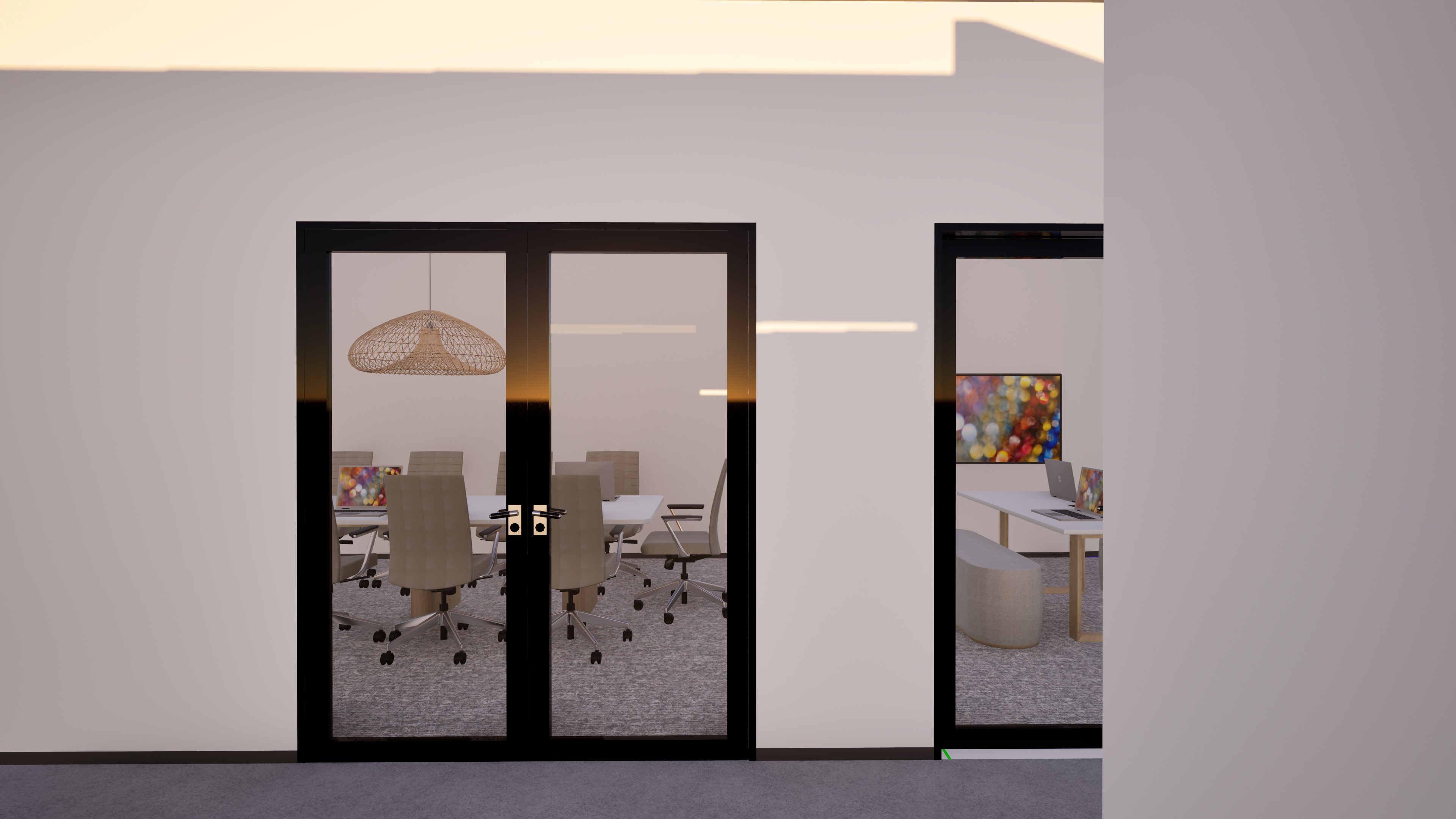 add decor make more realistic and add professional people do not change any of the furniture or materials add recessed lighting do not change any colors