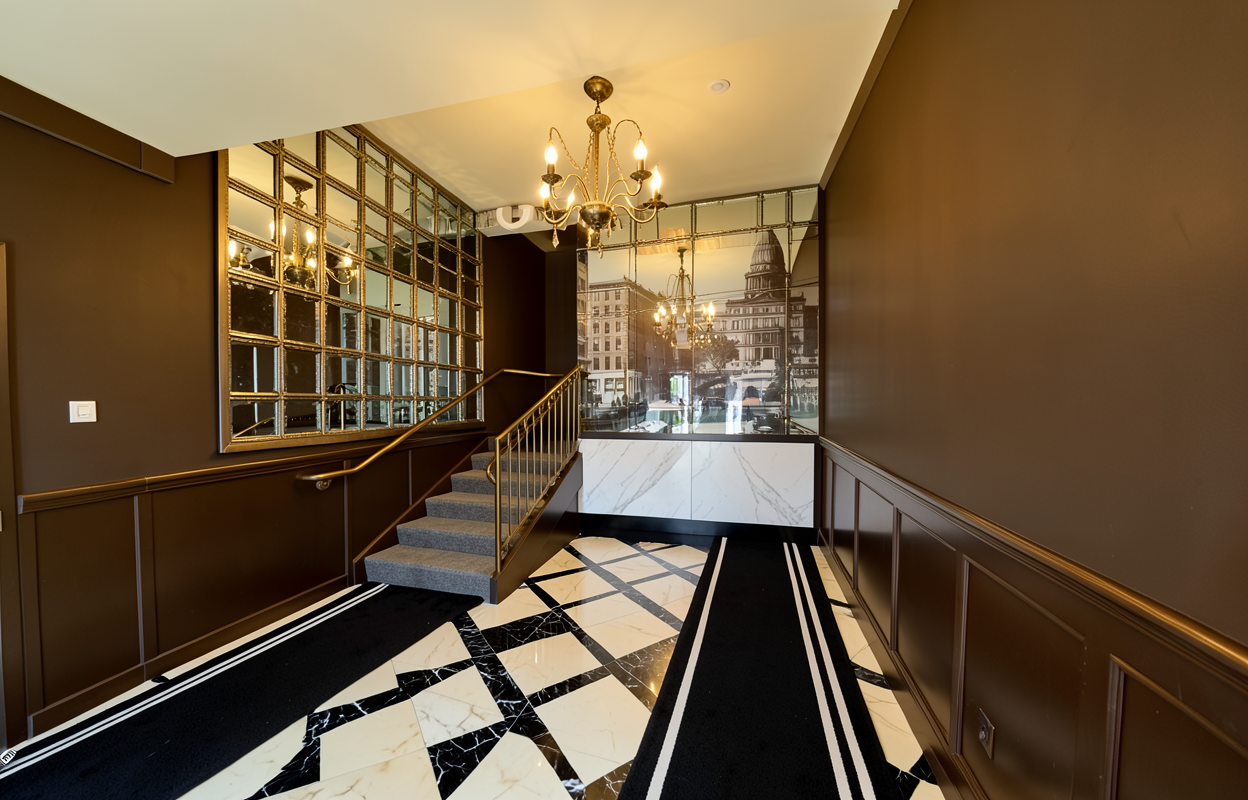 using reference image below replace all glass with these polycarbonate wall panels