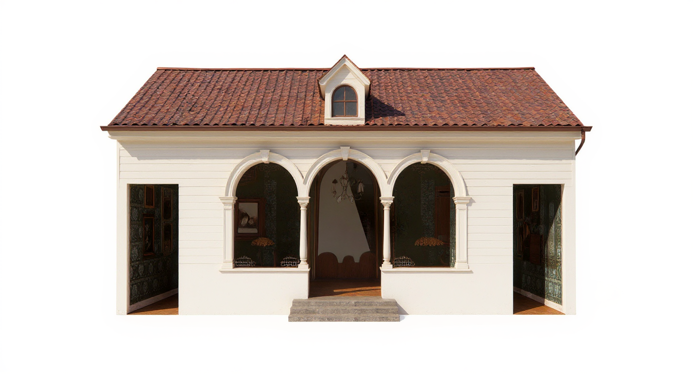 convert this floor plan into a realistic isometric 3d view of a full house show the space from an elevated angle with furniture walls and details visible airplane company guardshack with model airplane on top of the guardshack use gray blue colors with a 10 high flat roof with big accents surrounding the top of the roof use the same furniture as shows on the plan do not change the orientation of the floorplan
