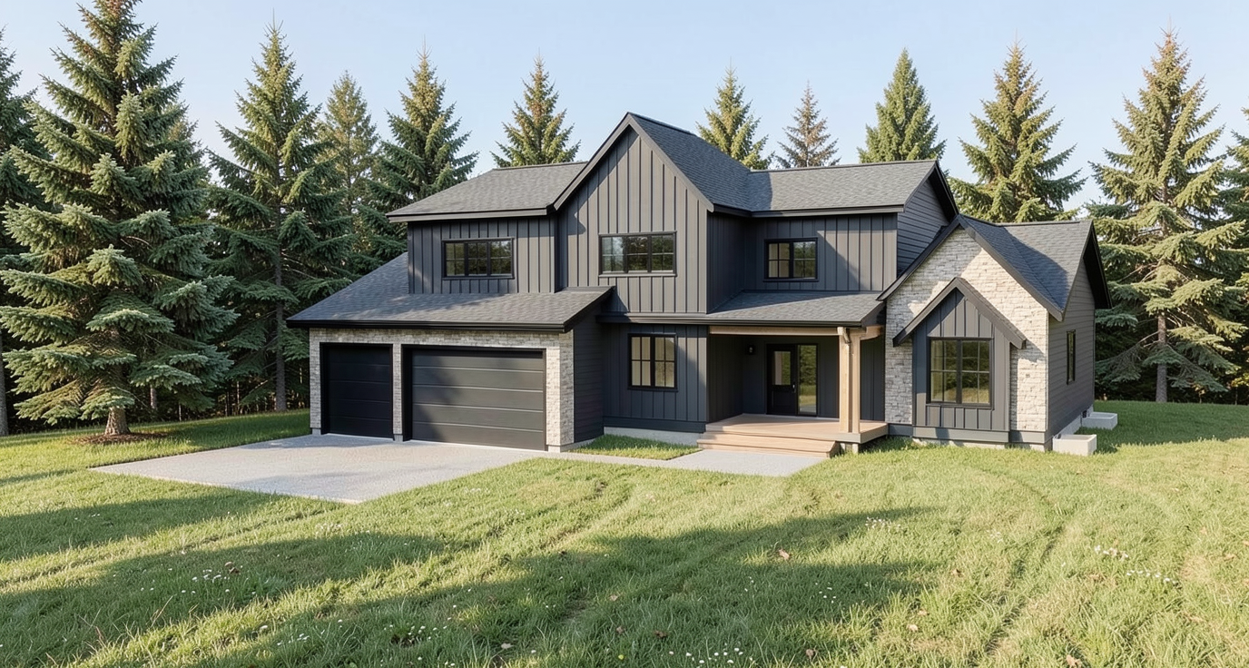 maintain all materials and colors make the meadow more like a minimalistic northern california coastal meadow with sage plants but no colors just shades of green keep roof unchanged these are asphalt shingles