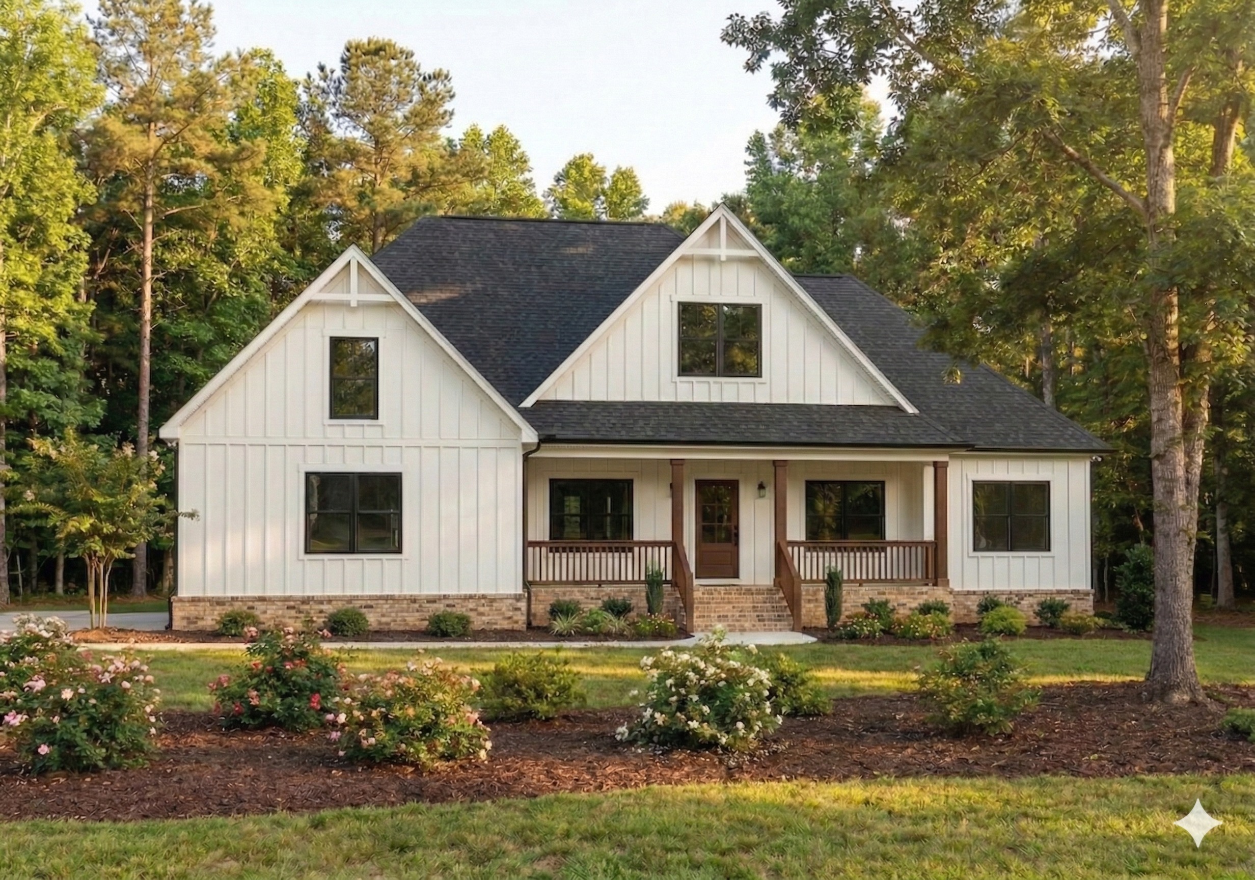 make 16x9 size image turn on porch light to right of door keep sunlight same as shown