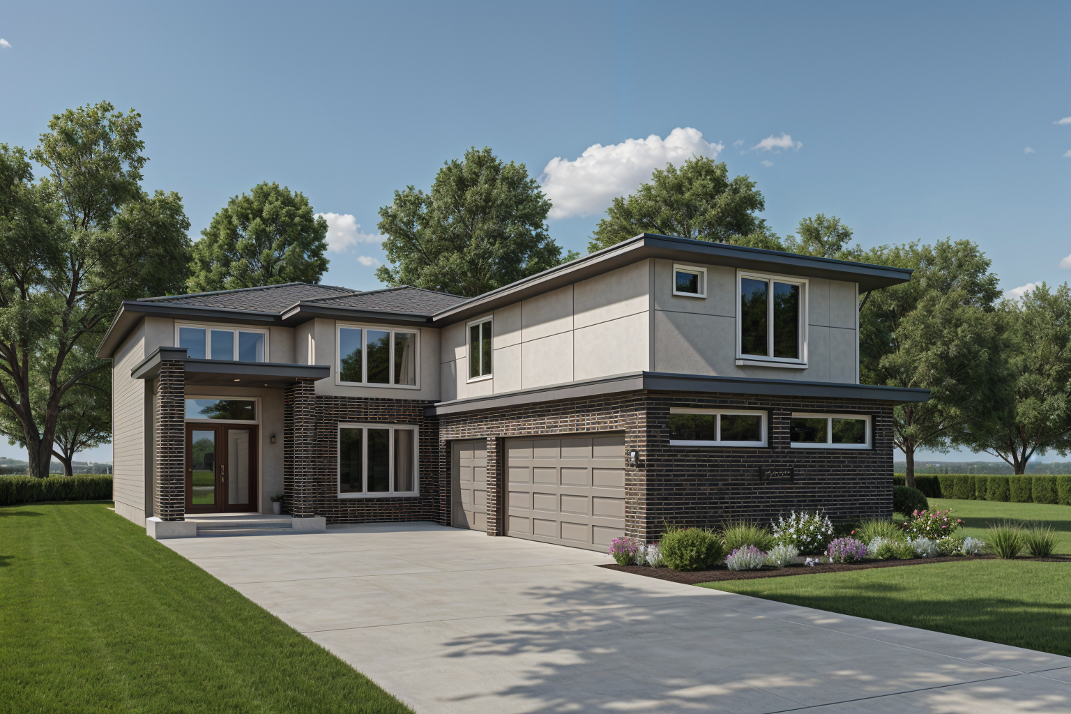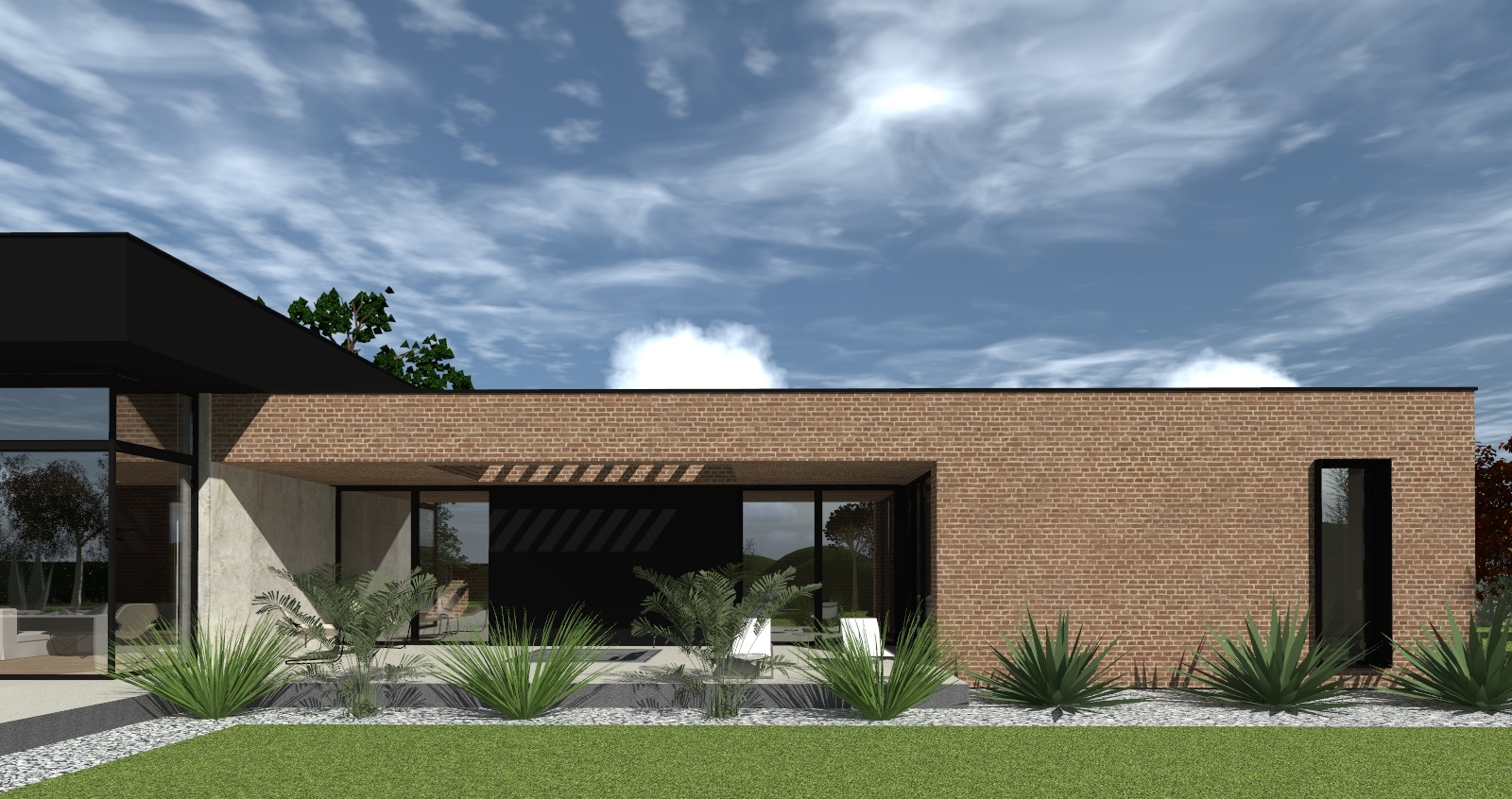 exterior shot enhance the plants enhance the trees enhance the brick texture architecture