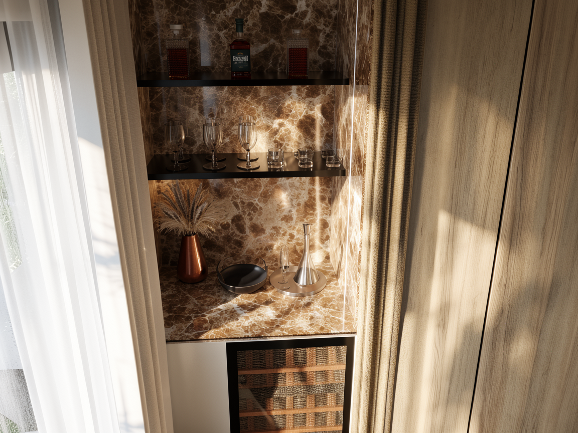 convert this floor plan into a realistic isometric 3d view of a full house show the space from an elevated angle with furniture walls and details visible keep floor plans as thay are while putting them in isometric interior is simple and in boho stile use the same furniture as shows on the plan do not change the orientation of the floorplan