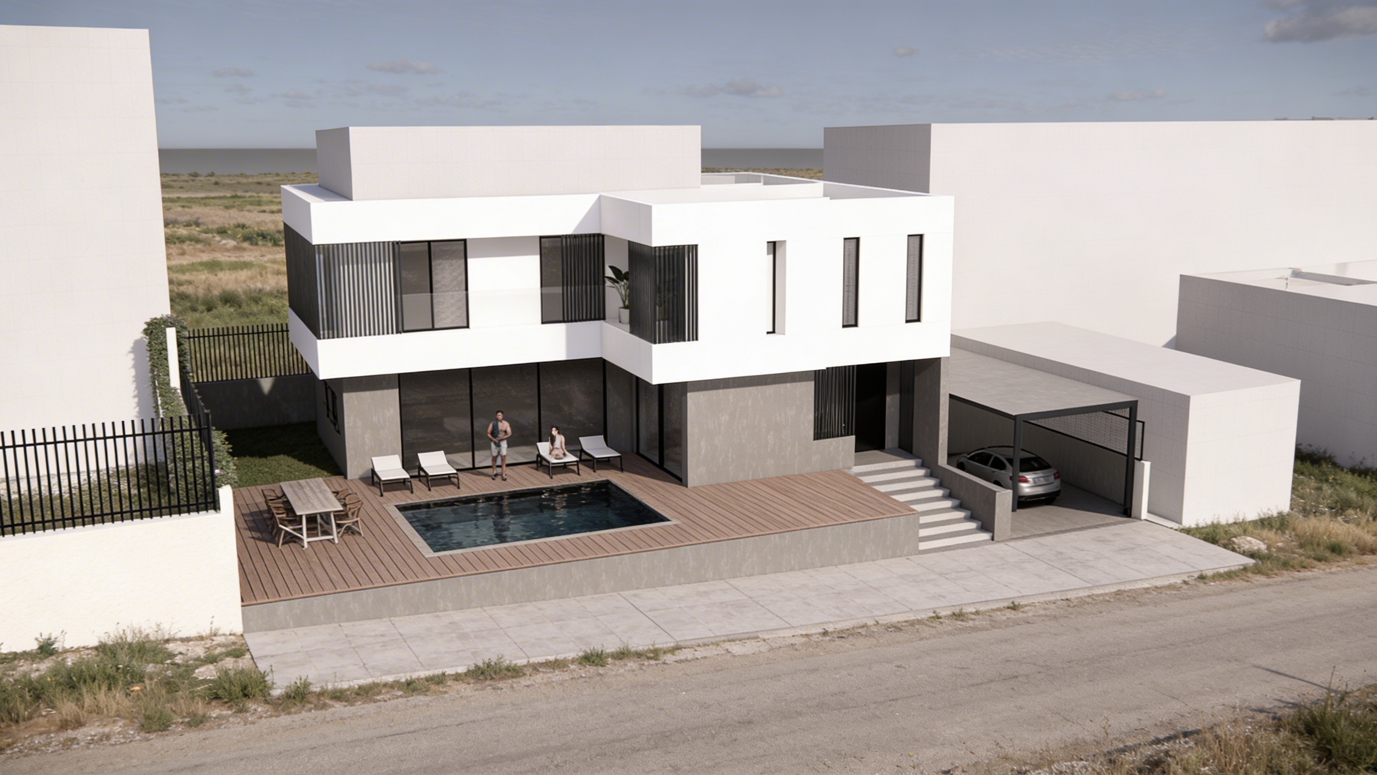 make more realistic in front of the building there is pavement and in front of it a rural street