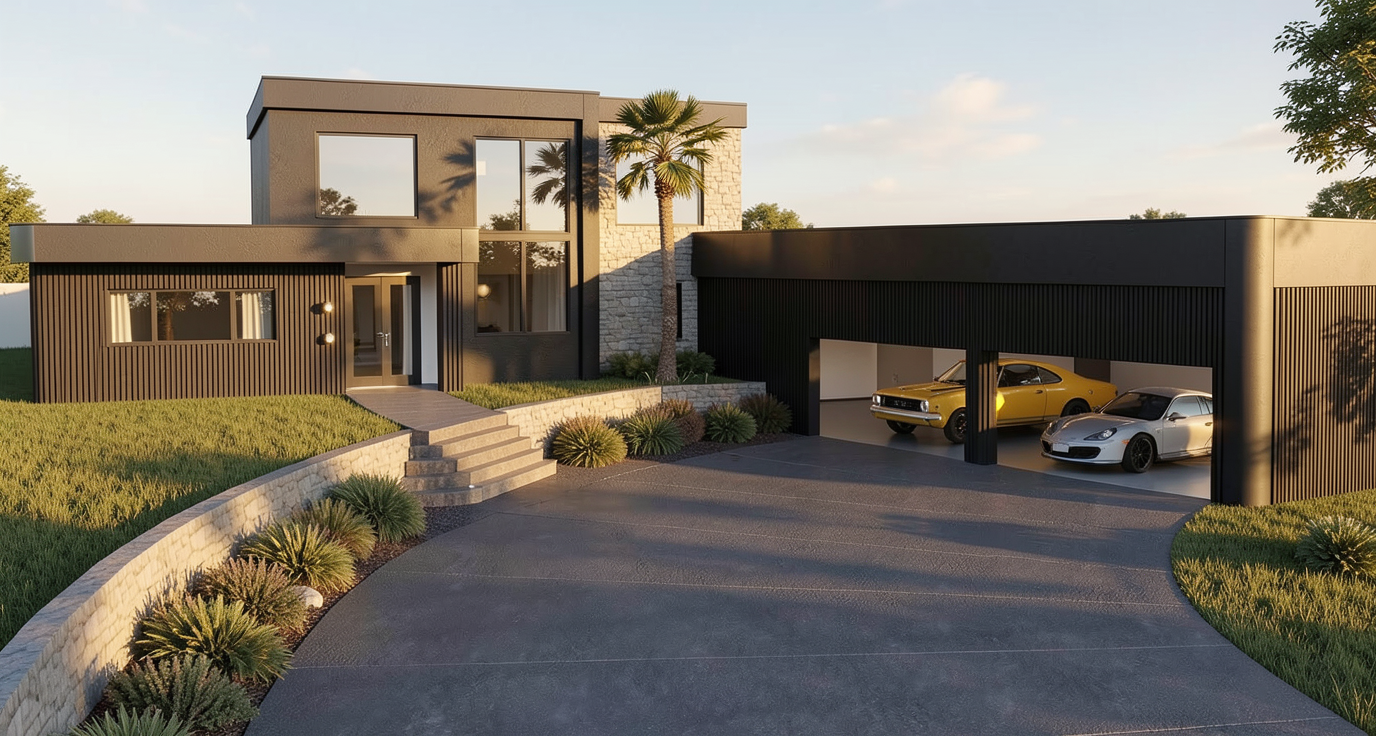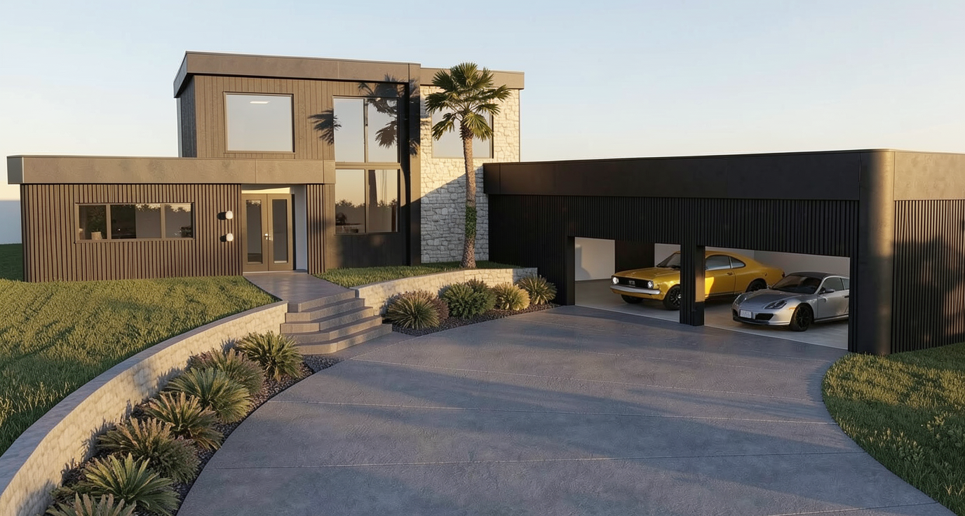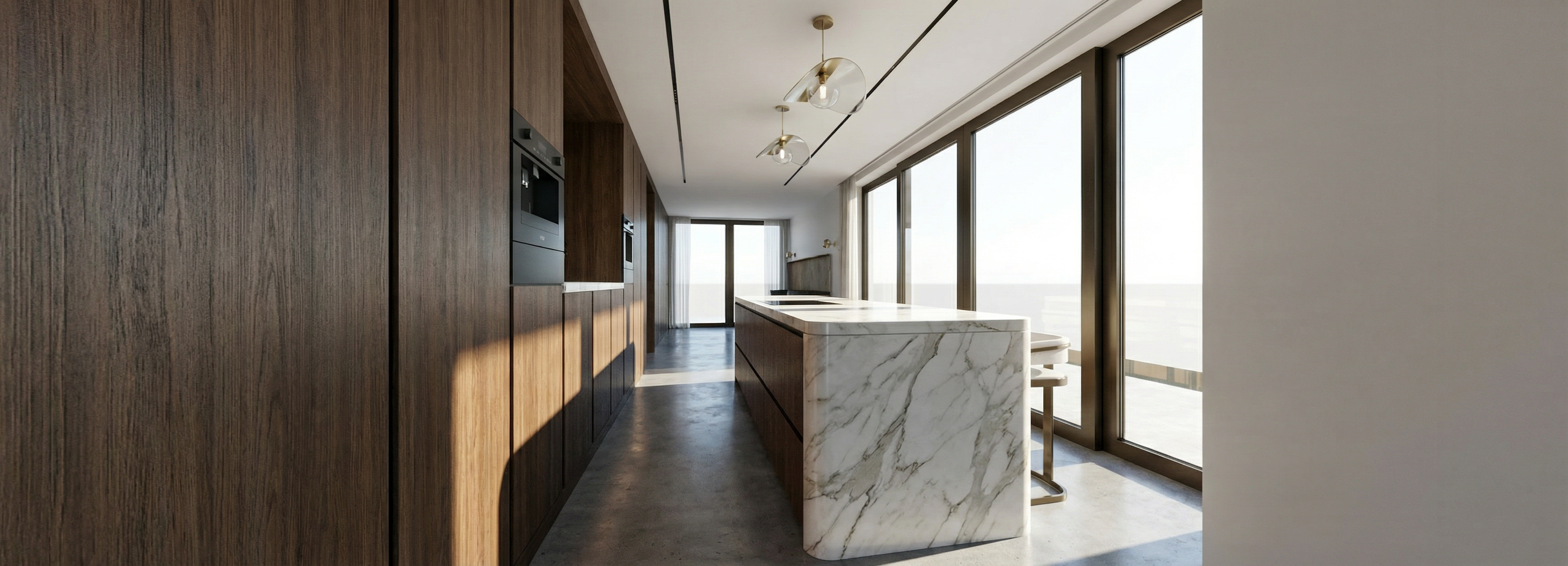 it s important to keep the sizes of everything the same change textures and materials but keep the sizes of everything the same make rock realistic its important to keep to scale this room is big do not change size of windows or doors do not add doors or windows do not change or add fixtures warm modern luxury bathroom with light gray marble or quartzite subtle veining polished finish light natural wood cabinetry mixed with painted off white cabinets flat panel doors minimal hardware soft warm lighting pendant over tub brushed brass accents tall brass faucet neutral color palette creamy whites warm taupes light wood tones wide plank oak flooring clean and minimal styling high end residential design soft ambient glow architectural visualization ultra realistic 8k detail back ground in pine trees and montana vegetation add shelf between tub and window dont add vanities