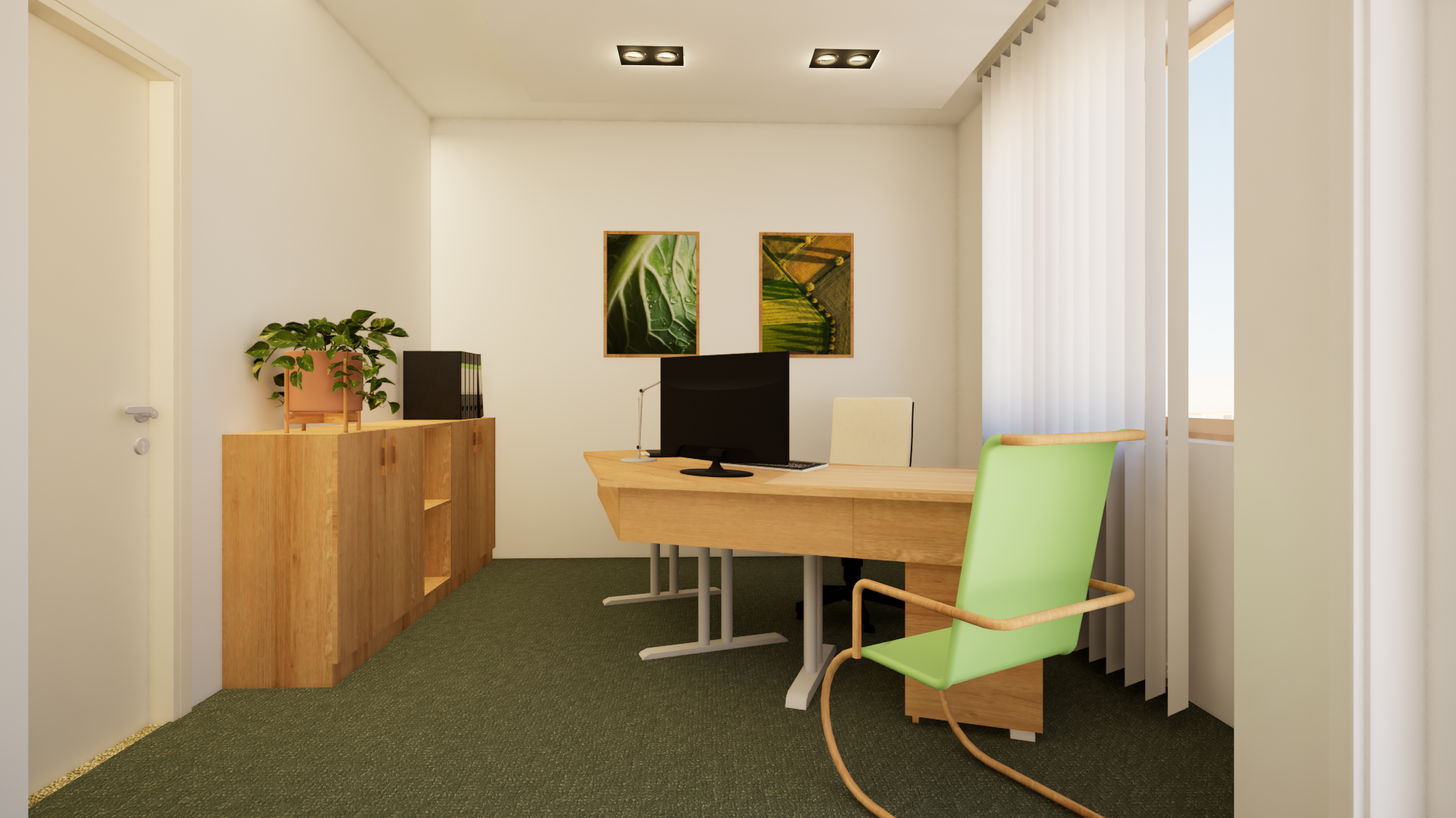 create a photorealistic visual plan make it realistic the table legs are matt aluminium color the chair is wood legs