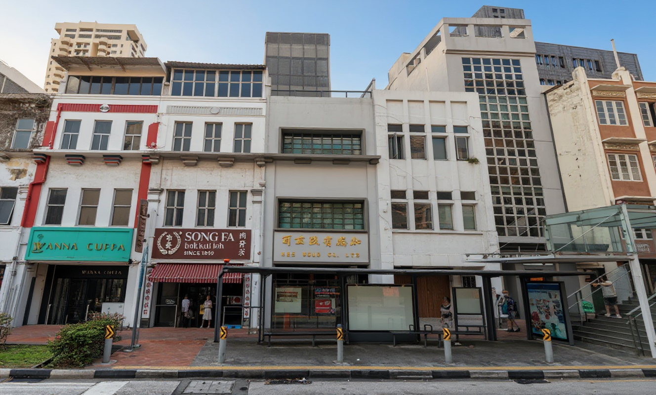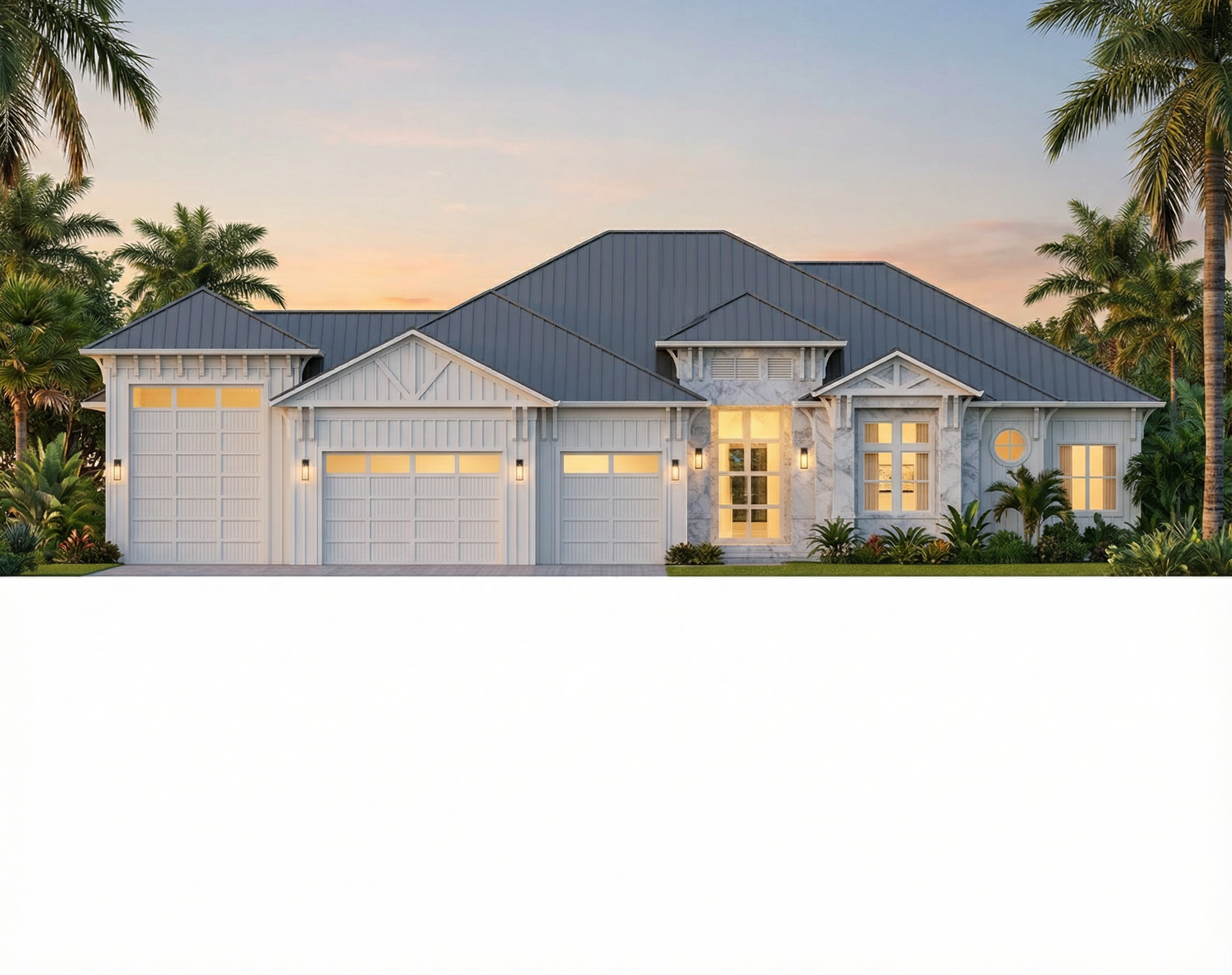 sunset view in clear sky with cleaner streetscape in realistic architectural style