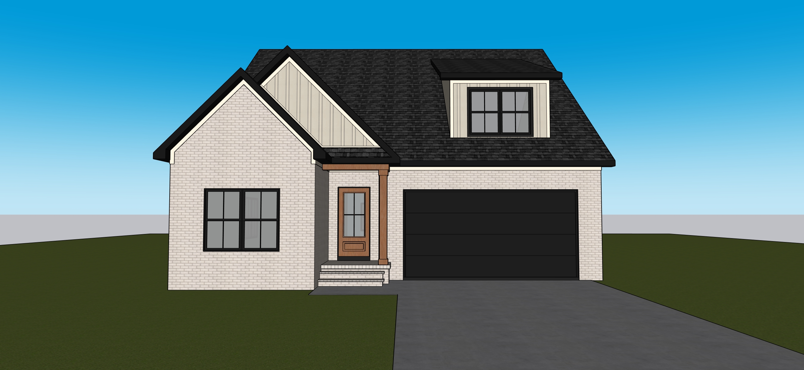 maintain colors and design trees in background add landscaping mowed yard top level of garage door has windows craftsman style garage door make realistic