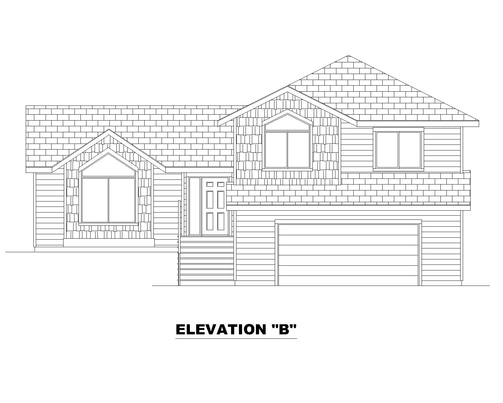 watercolor render of modern craftsman style home green paint black trim and wood accents into the side of a hill on the left side include trees and an alaska like environment in the background simple driveway and walkways in front of the home