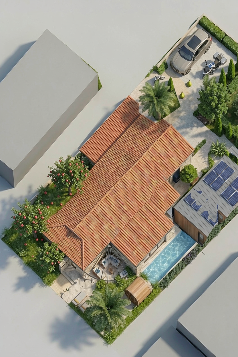 try to make 3d view of this area especially from south angle where the rest area and pool is