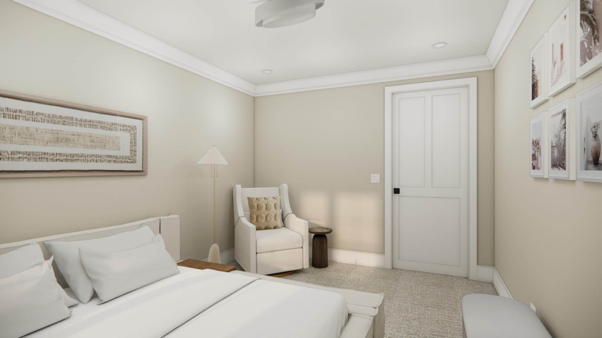 enhance this render to look more realistic improve lighting shadows reflections and material realism but do not add remove or alter any elements objects or materials keep everything exactly the same just make it more photorealistic add brightness to this room from the lamp and the ceiling cans we want this room to be light and airy and have the walls lighter