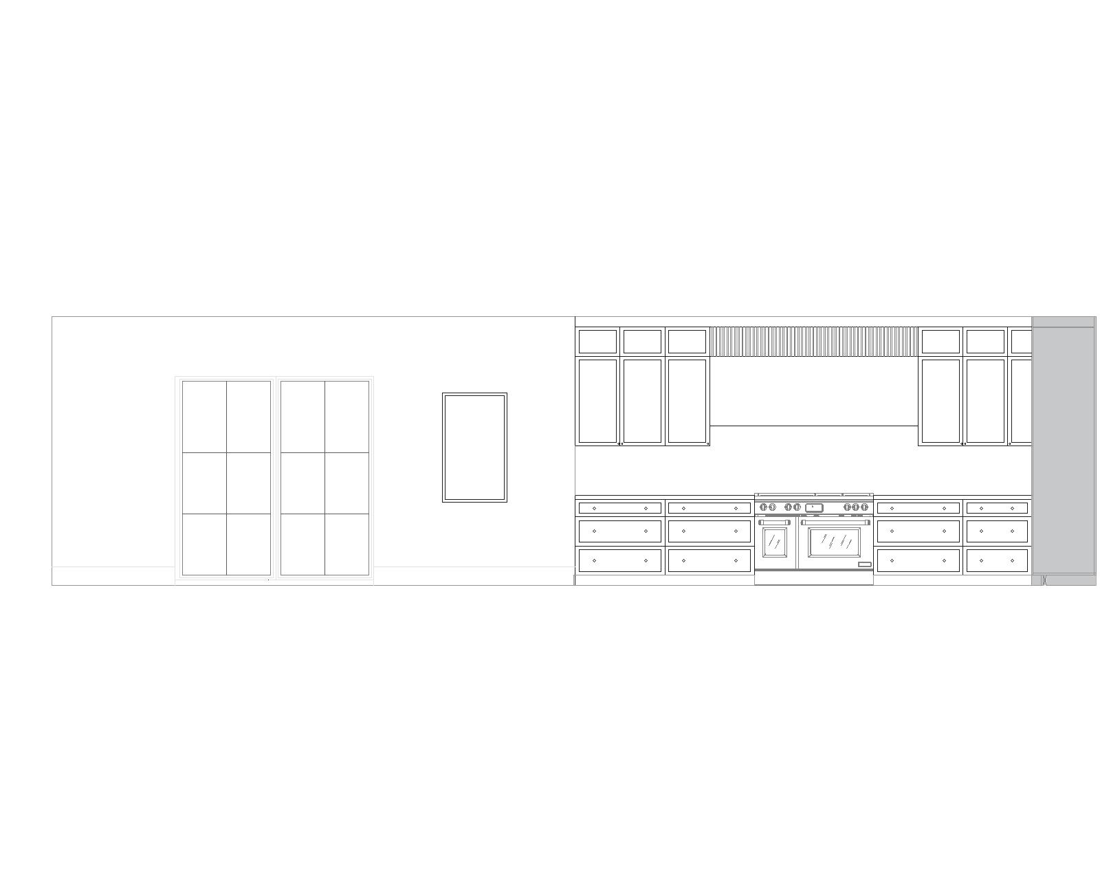 convert this floor plan into a modern isometric 3d view of a kitchen show the space from an elevated angle with furniture walls and details visible use the same furniture as shows on the plan do not change the orientation of the floorplan