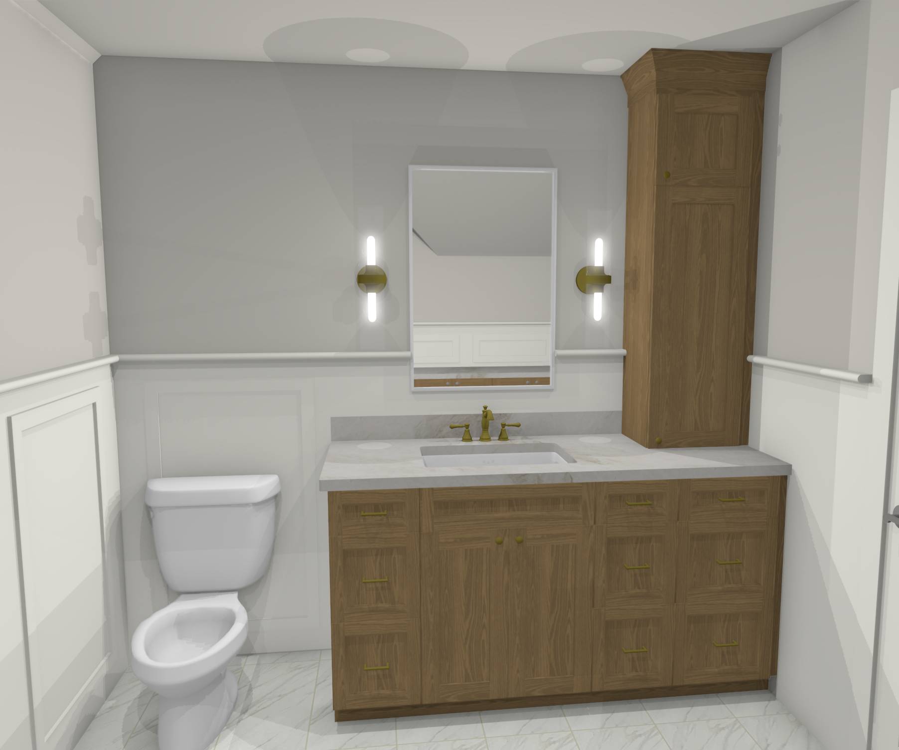 show this render to be very well lit show a chair rail on the right side wall with wallpaper above it