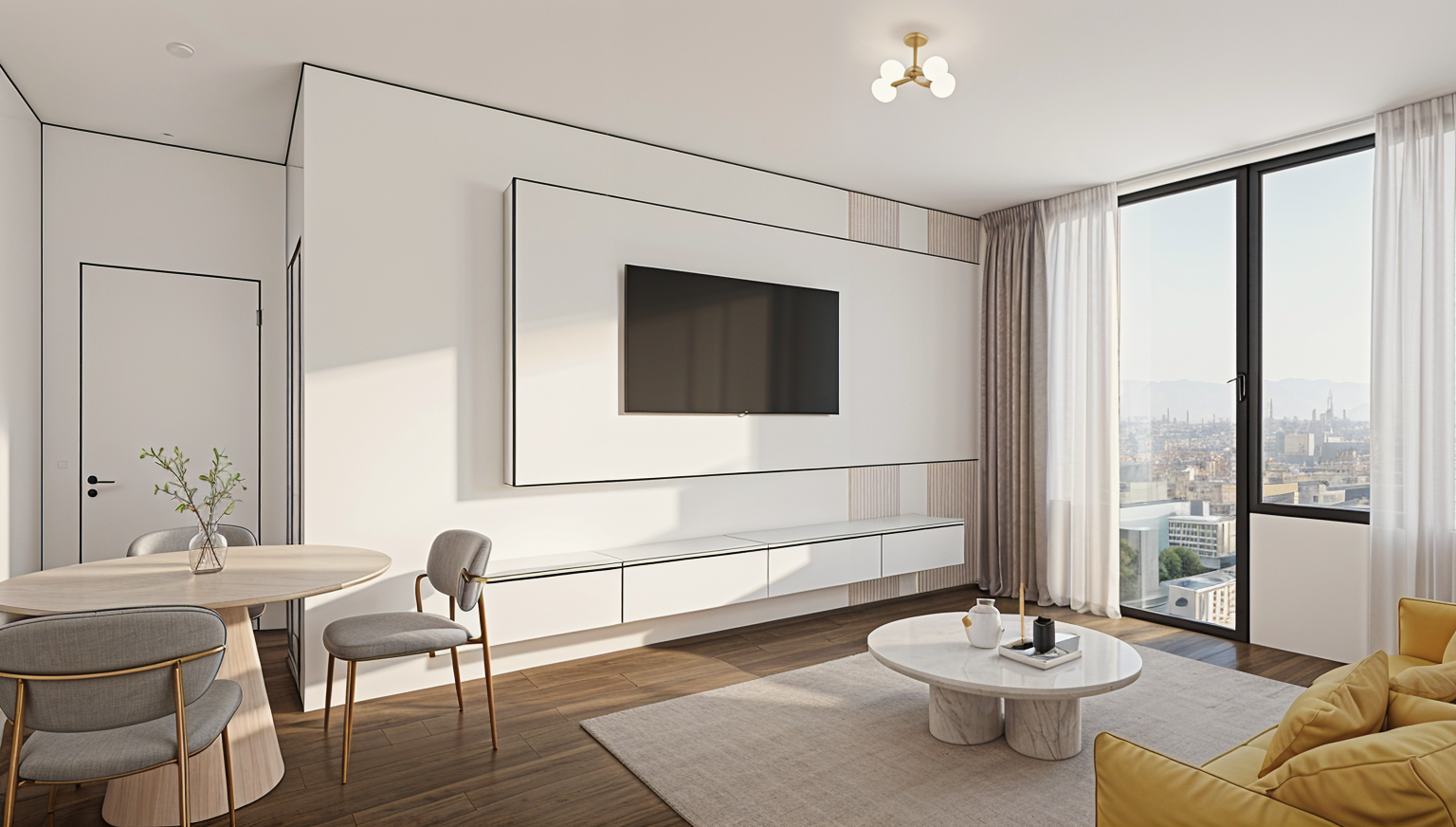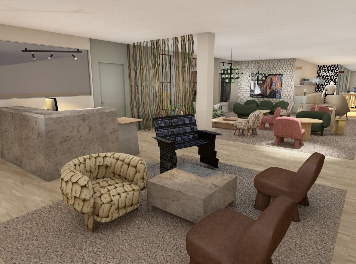 transform this picture into a realistic interior visualization with natural light keep the camera angle keep the original materials and textures make it an ultradetailed view with global illumination and photo based rendering materials