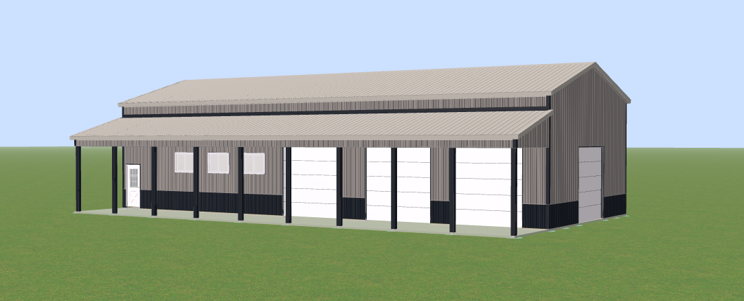 make this look like a real photo do not change any colors put in a sunny backdrop and concrete driveways to the overhead doors