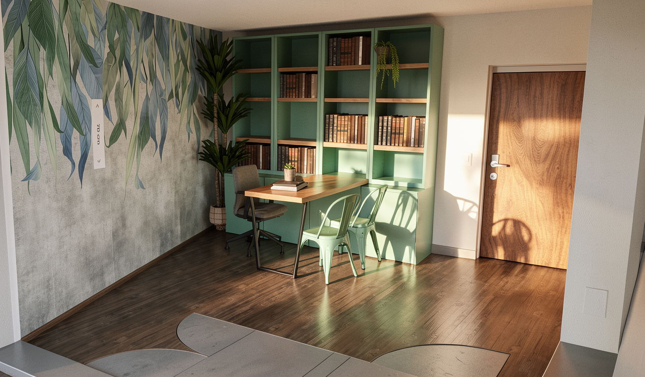 realistic architectural photography of interior room maintain original furniture placement and geometry bright daylight vivid colors realistic light bounce sharp focus ray traced reflections on surfaces ultra detailed textures clean and airy atmosphere