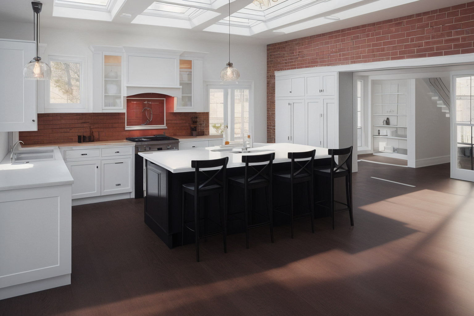 interior shot warm kitchen with floor to ceiling millwork architecture