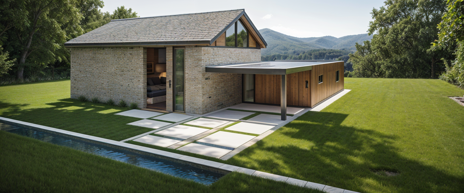 modern exterior shot just add landscaping keep everything else the same in the original rendering architecture