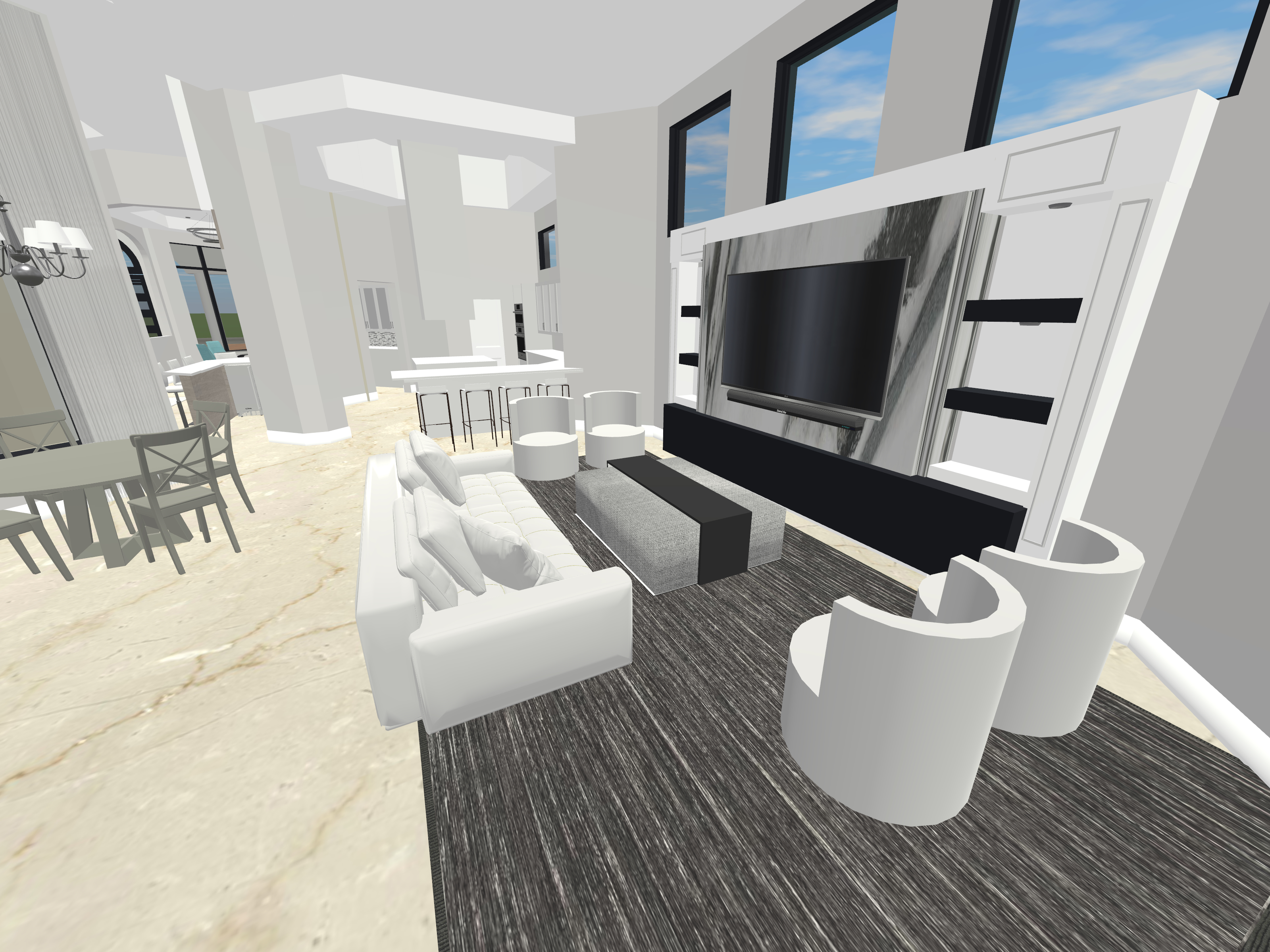 take out the lower windows in the wall unit and make it a solid back with black shelves