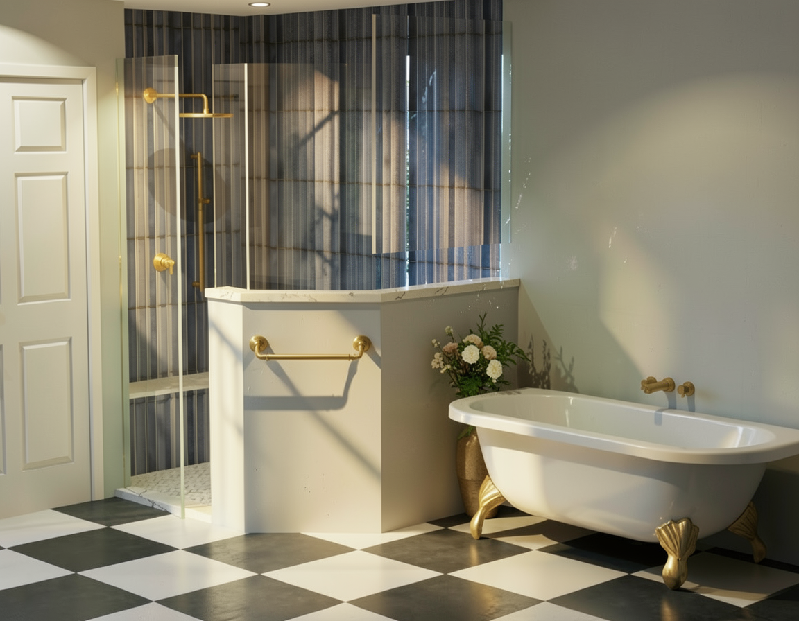 add daylighting kitchen accessories and ambient lighting under the wall cabinets show a white subway tile backsplash white quartz countertops brass hardware and painted white cabinets