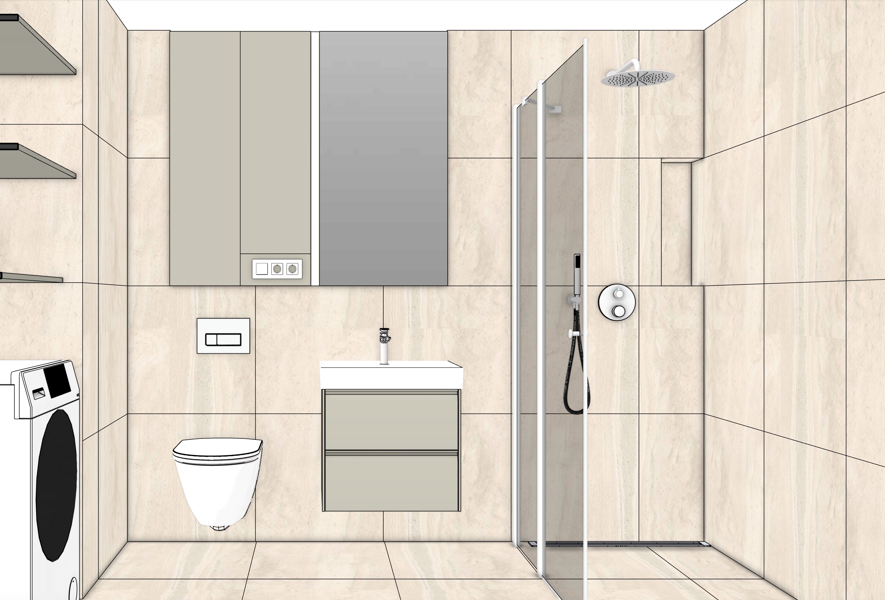 modern bathroom with no natural light light feel with chrome faucets and matt travertine tiles