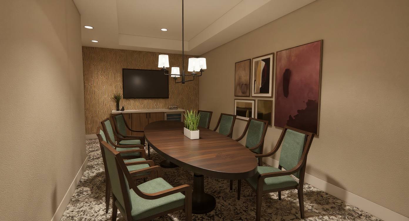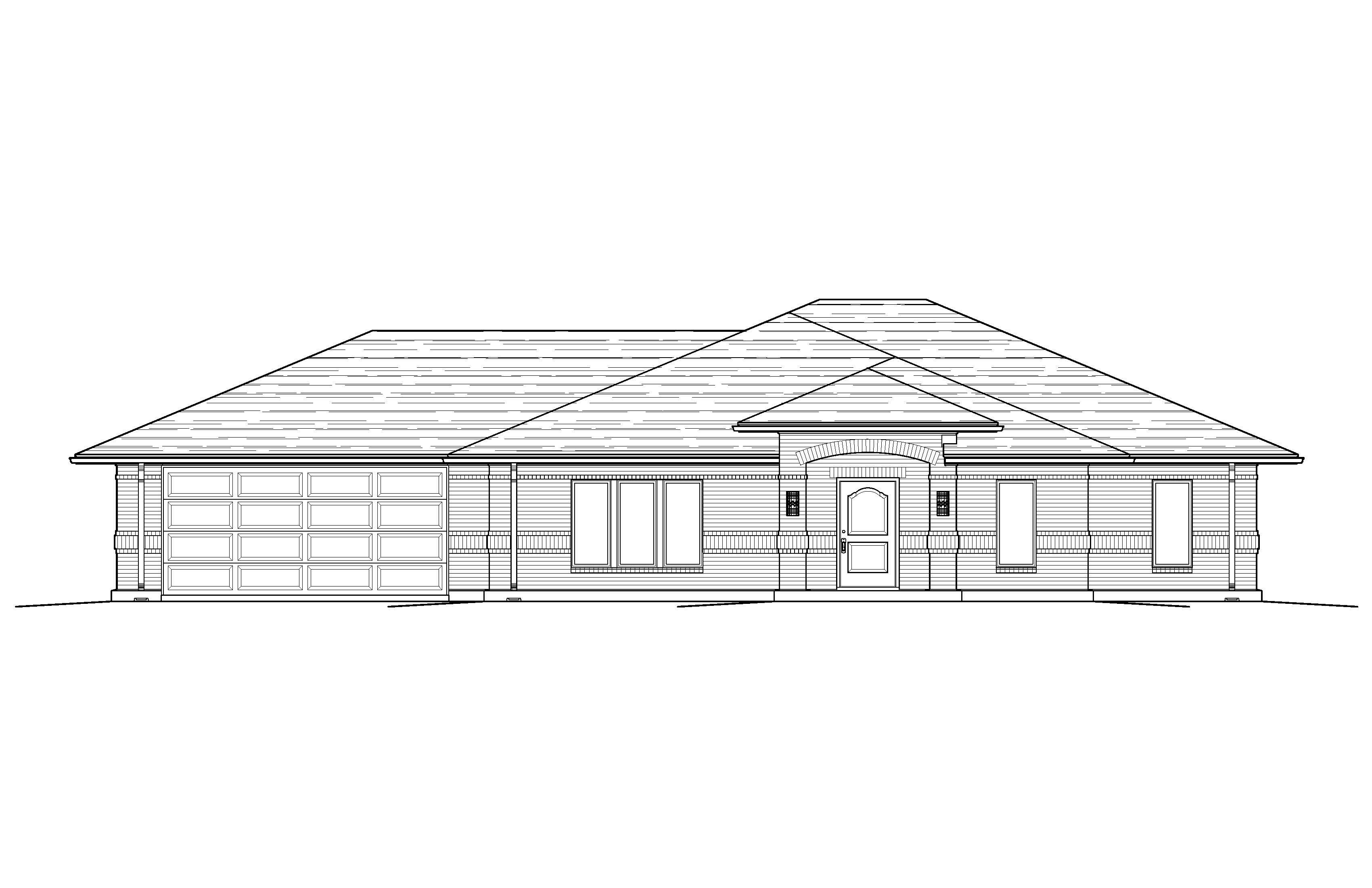 prairie style texas ranch land setting with foundation planting and wildflowers mottled brown roman brick bronze paint on doors windows fascia texas live cream colored window frames oak trees in yard taper walk up to front porch gravel drive to garage door no wall light by garage door texas red blue and yellow wild flowers in yard ramp sidewalk up to front porch ledge at base of house is concrete