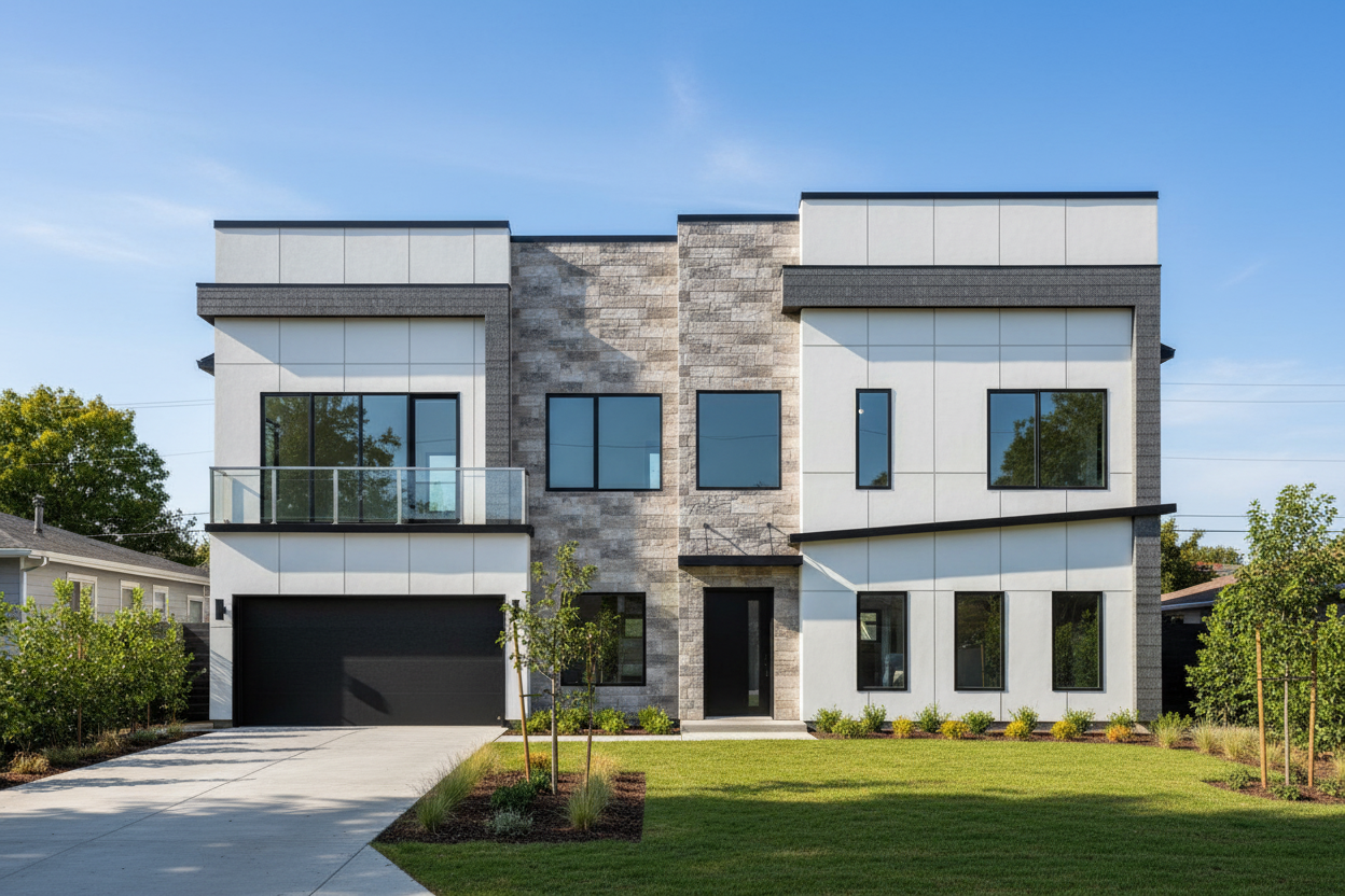 architectural rendering in watercolour style maintain consistency in brick colour and keel similar to model smooth out grass so it all seems level add child playing soccer in grass
