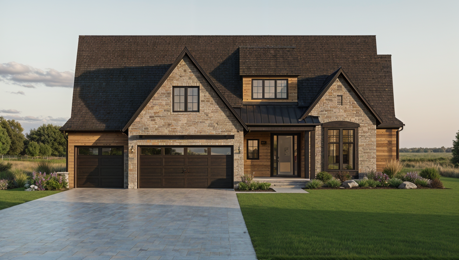 reflects in the windows lot of light and pines respect the lines