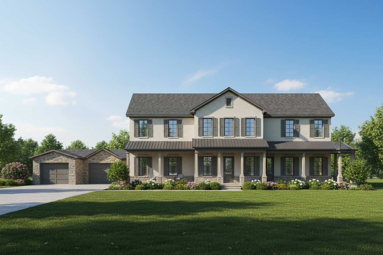 2 car garage should show as detached connected by an open covered breezeway second level of the home should all be horizontal siding everything else should remain as is