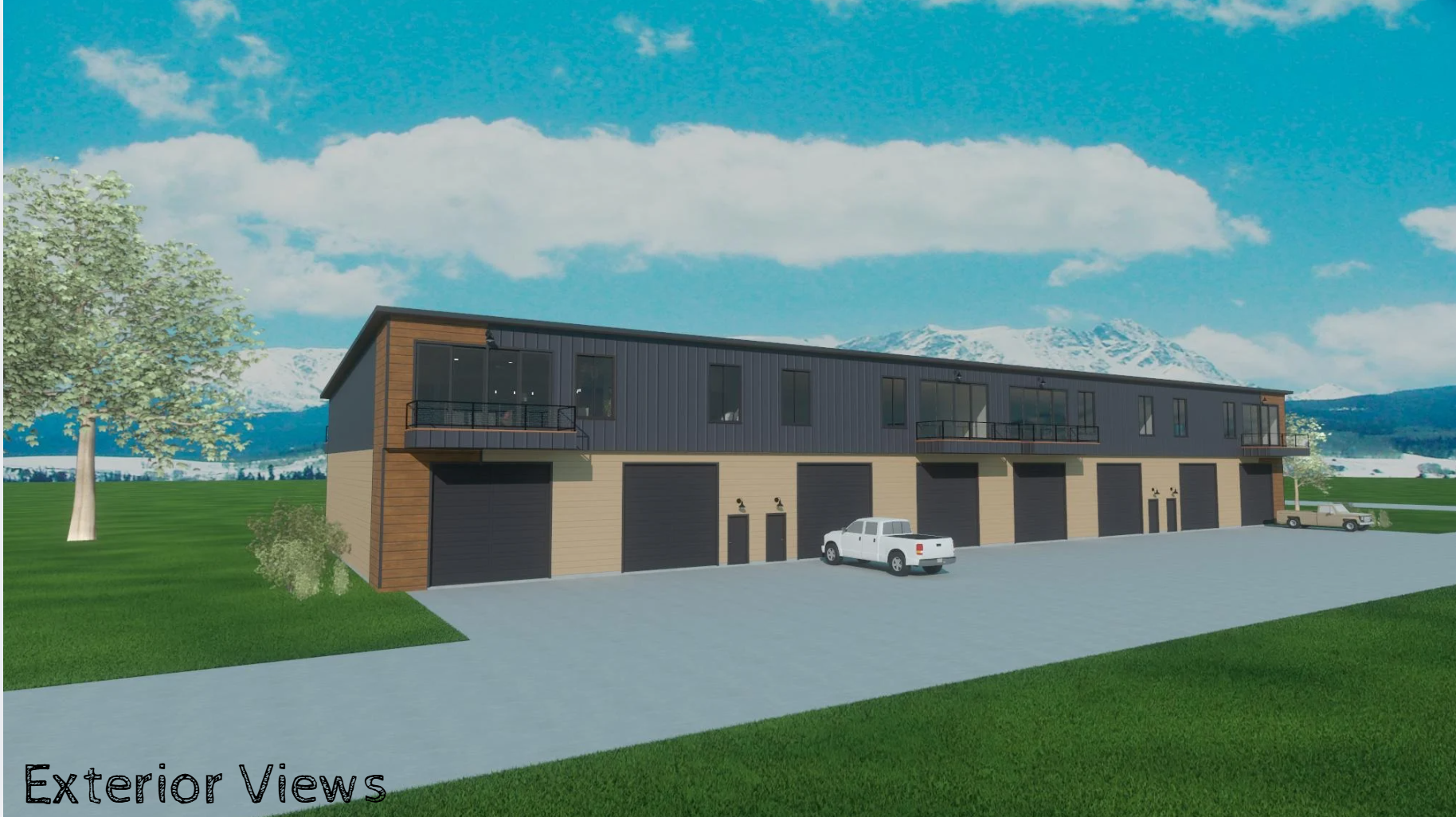 these units are 30 feet tall to the make the rough line overhang by two feet left hand underneath that patio is a garage door all the garage doors are black there are no stairs coming down reach to avoid a government shutdown will go live to cap over the doors are 14 feet tall