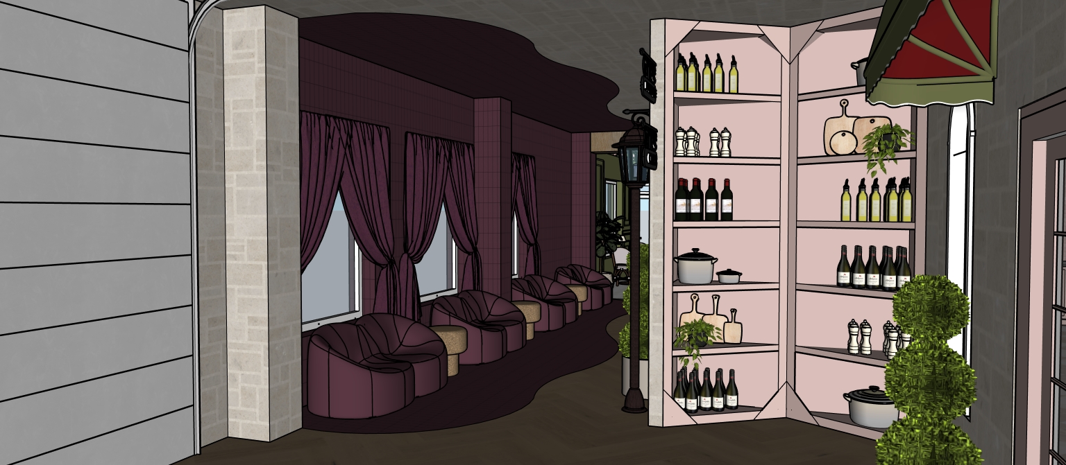 keep everything the same the dark purple section is 2 by 6 tiles the shelf on the right should be light dusty pink